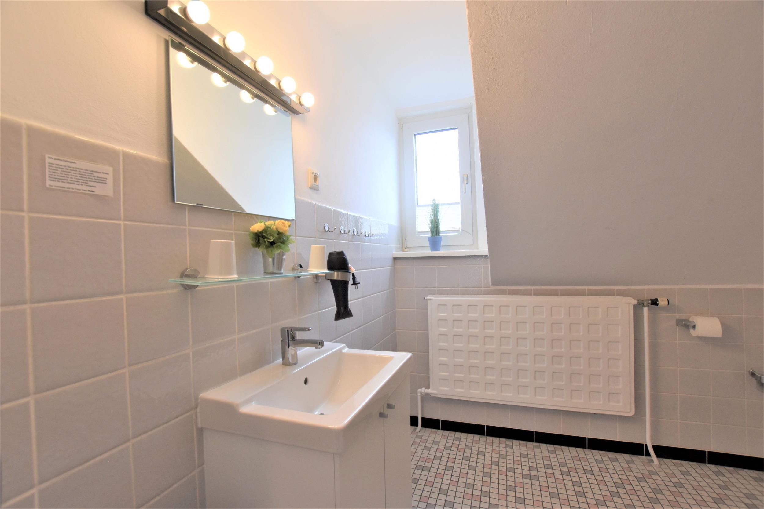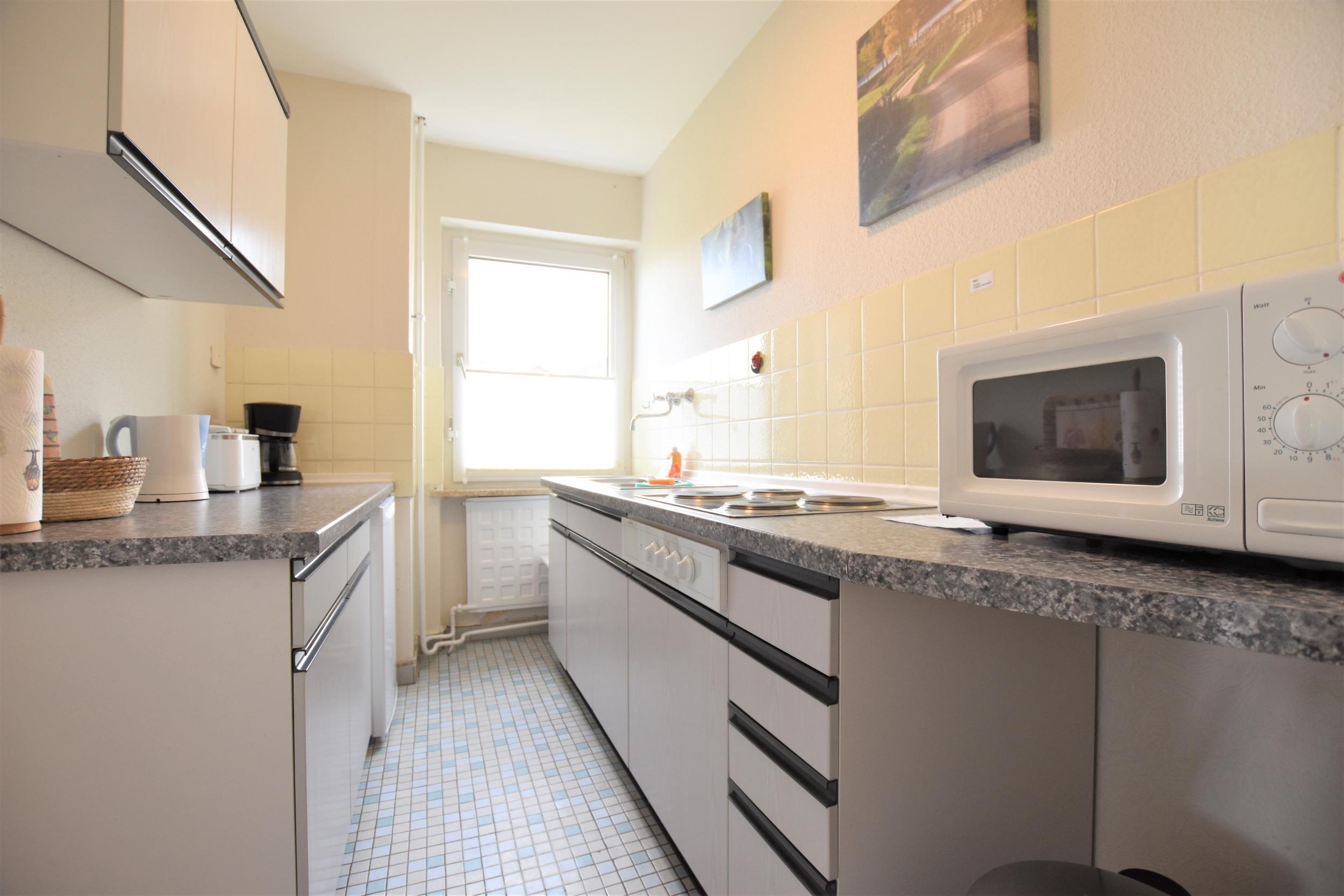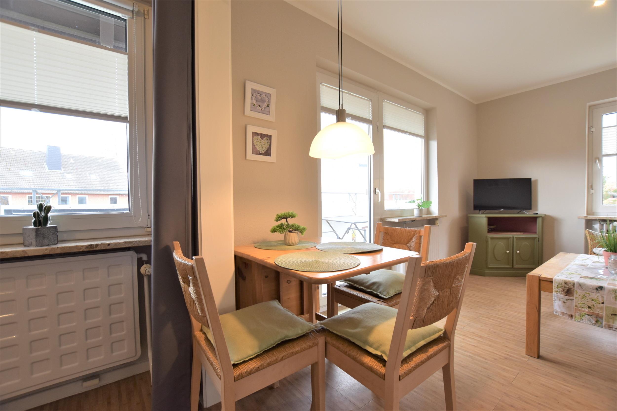 Die Ferienwohnung Nr. 2 liegt im 1. Stock und bietet Platz für max. vier Personen. Die Wohnfläche der ca. 50 m² großen Unterkunft verteilt sich auf ein Wohn- / Esszimmer mit Einzelbett(90x200), ein separates Schlafzimmer, die kleine Küche sowie ein Tageslicht-Badezimmer. Das Wohnzimmer ist mit einer gemütlichen Sitzecke, einem ausklappbaren Essplatz, TV sowie einem Einzelbett versehen - von hier aus haben Sie Zugang zum Süd-Balkon. Die Küche ist u.a. mit Kaffeemaschine, 4-Plattenherd und Toaster ausgestattet. Das Tageslicht-Badezimmer verfügt über eine Badewanne mit Duschfunktion und WC. Im separaten Schlafzimmer befindet sich ein Doppelbett (2x90 x 200 cm)und ein großer Kleiderschrank. Nur vier Gehminuten zum Strand. W-LAN ist kostenfrei vorhanden.