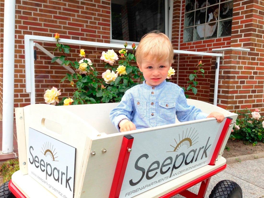 Für unsere ganz kleinen Gäste stellen wir auf Wunsch gerne einen Kinderhochstuhl und ein Kinderbett kostenlos zur Verfügung. Bitte informieren Sie uns bei Ihrer Buchung. Fahrräder und Bollerwagen stehen kostenlos bereit.