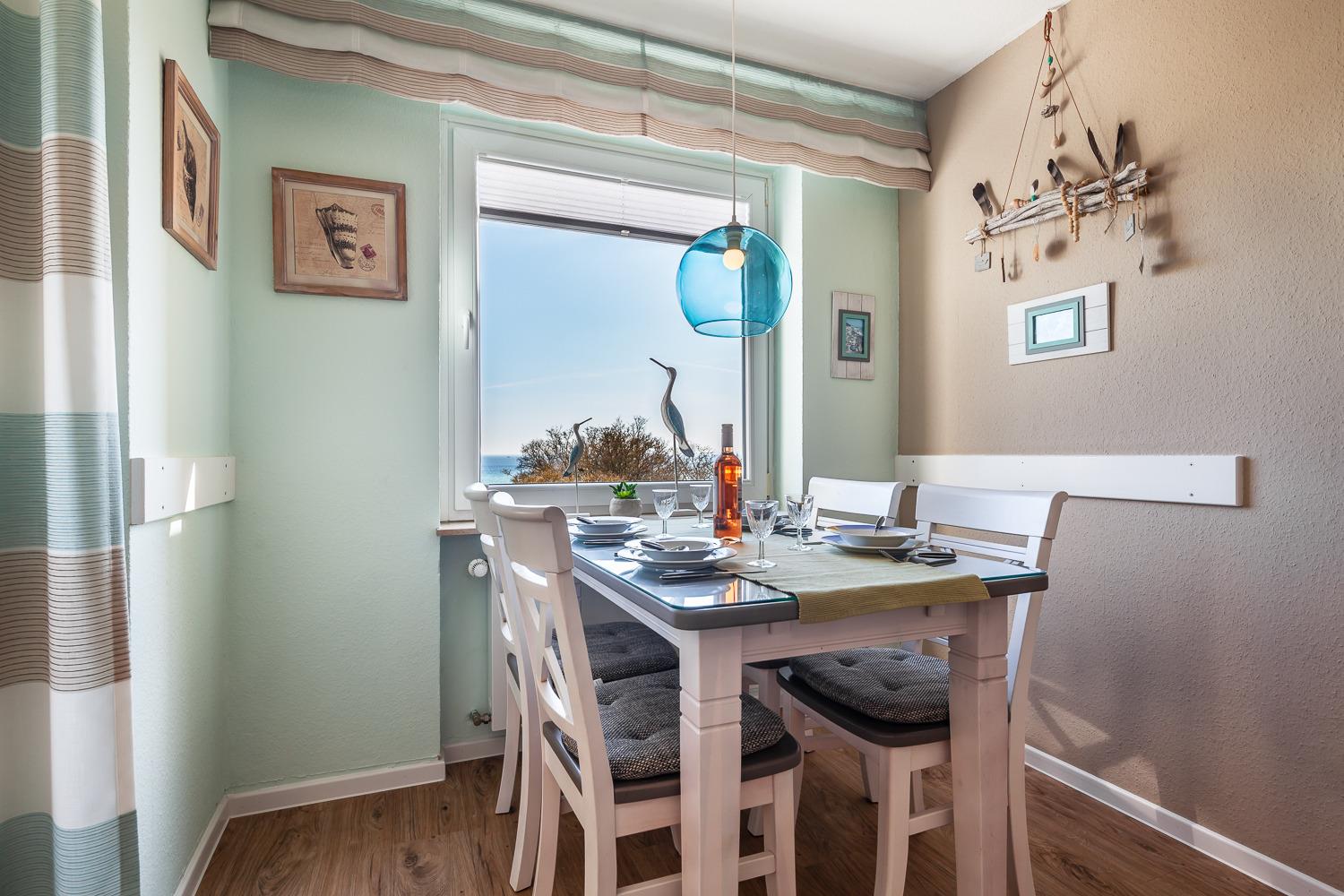 Genießen Sie den wunderschönen Blick auf die Ostsee - lassen Sie sich schon beim Frühstück den Sonnenschein schmecken und beobachten bei Wind und Wetter die Schiffe auf dem Meer.