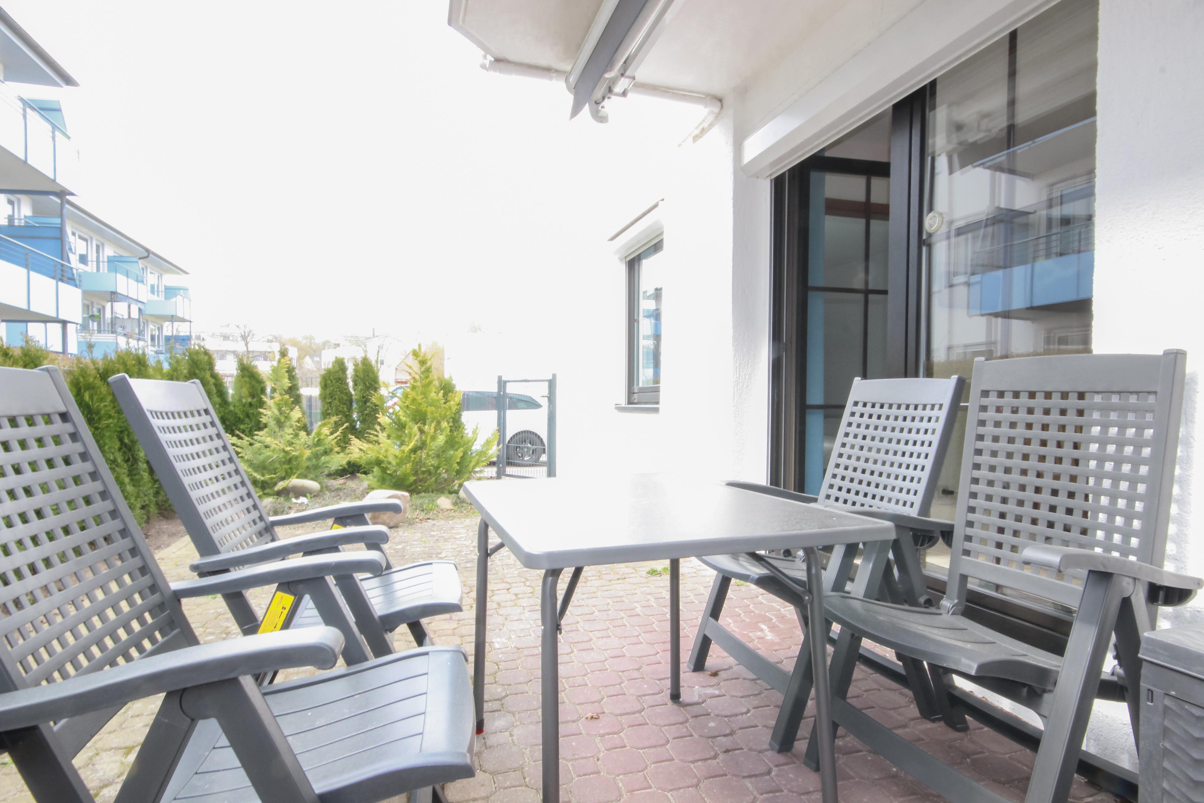 Gemütliche 3-Zimmer-Ferienwohnung mit Süd-West-Terrasse in Grömitz, frisch renoviert und modern ausgestattet für einen erholsamen Ostseeurlaub.