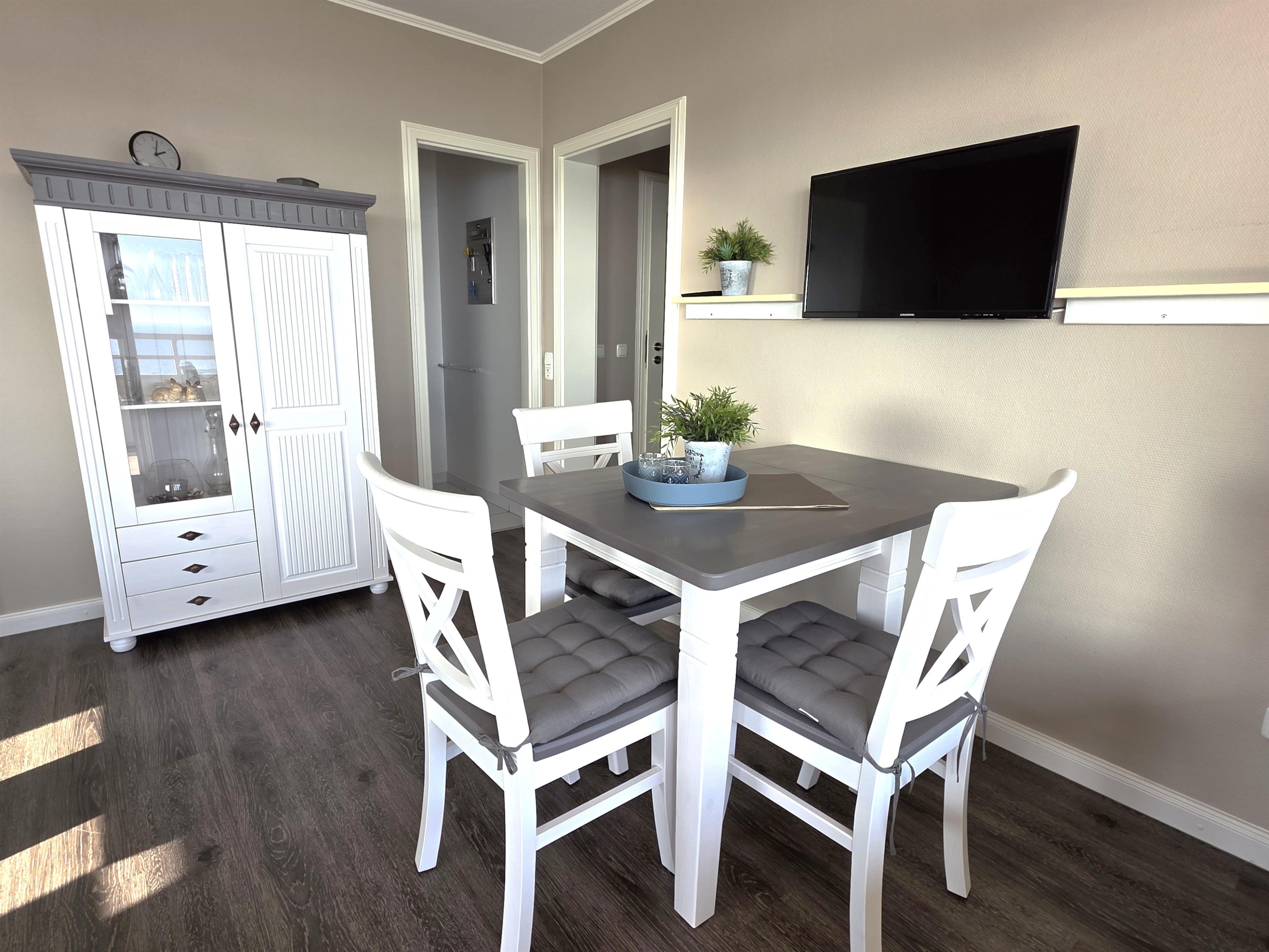 Der großzügige Wohn-/ Essbereich bietet eine Couchgarnitur für gemütliche Abende. Zur Unterhaltung steht Ihnen ein Flach-TV/Radio zur Verfügung.