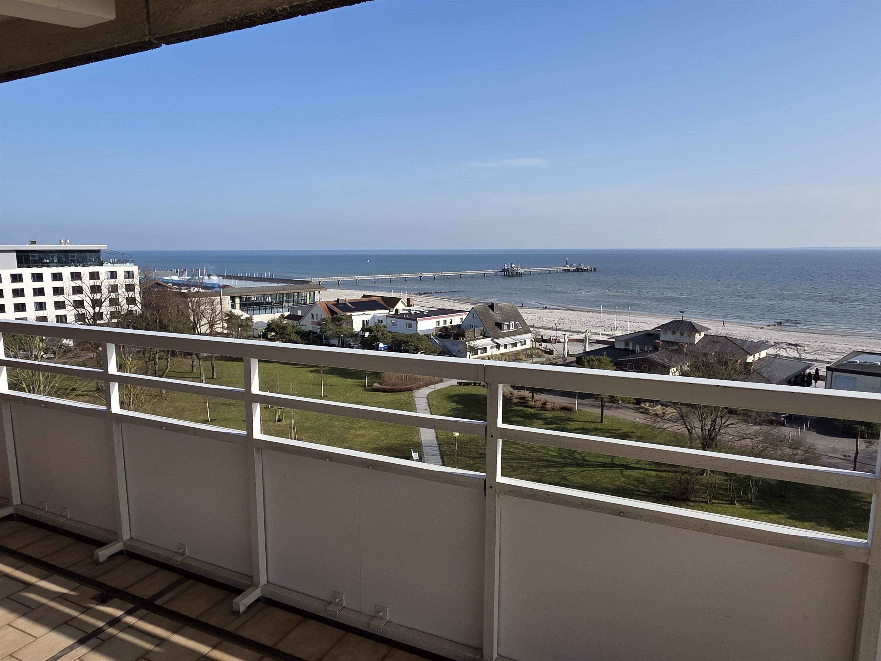 Diese wunderschöne Ferienwohnung in der 7. Etage verfügt über drei Zimmer, Meerblick aus jedem Zimmer und einem rundumlaufenden Eckbalkon (ca. 35 m²).
