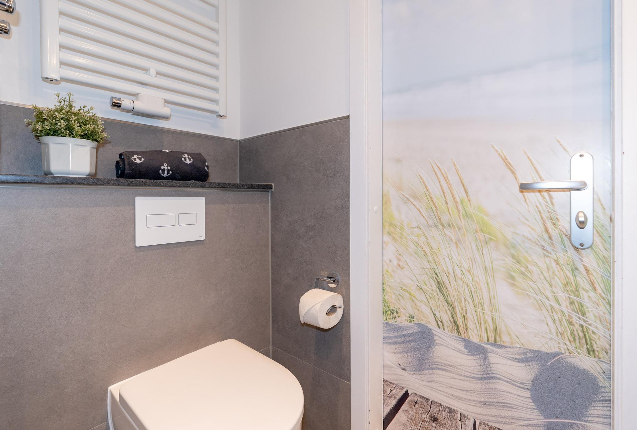 Das Badezimmer wurde im Winter 2025/26 vollständig erneuert. Eine geräumige Dusche mit Doppelflügeltür und Sitzbank, ein Hänge-WC, Waschbecken mit Stauraum im Unterschrank sowie ein Spiegel mit integrierter Beleuchtung und ein Handtuchheizkörper wurden hier in modernem Stil installiert.