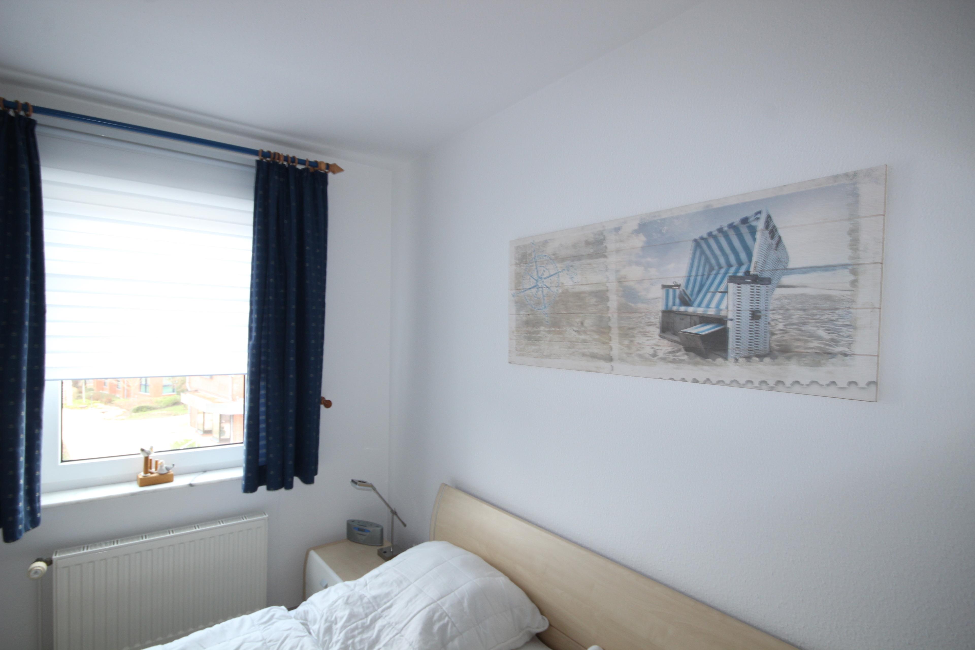 Das 2. Schlafzimmer ist mit zwei Einzelbetten & Kleiderschrank möbliert + Zugang zum Nord-West-Balkon.