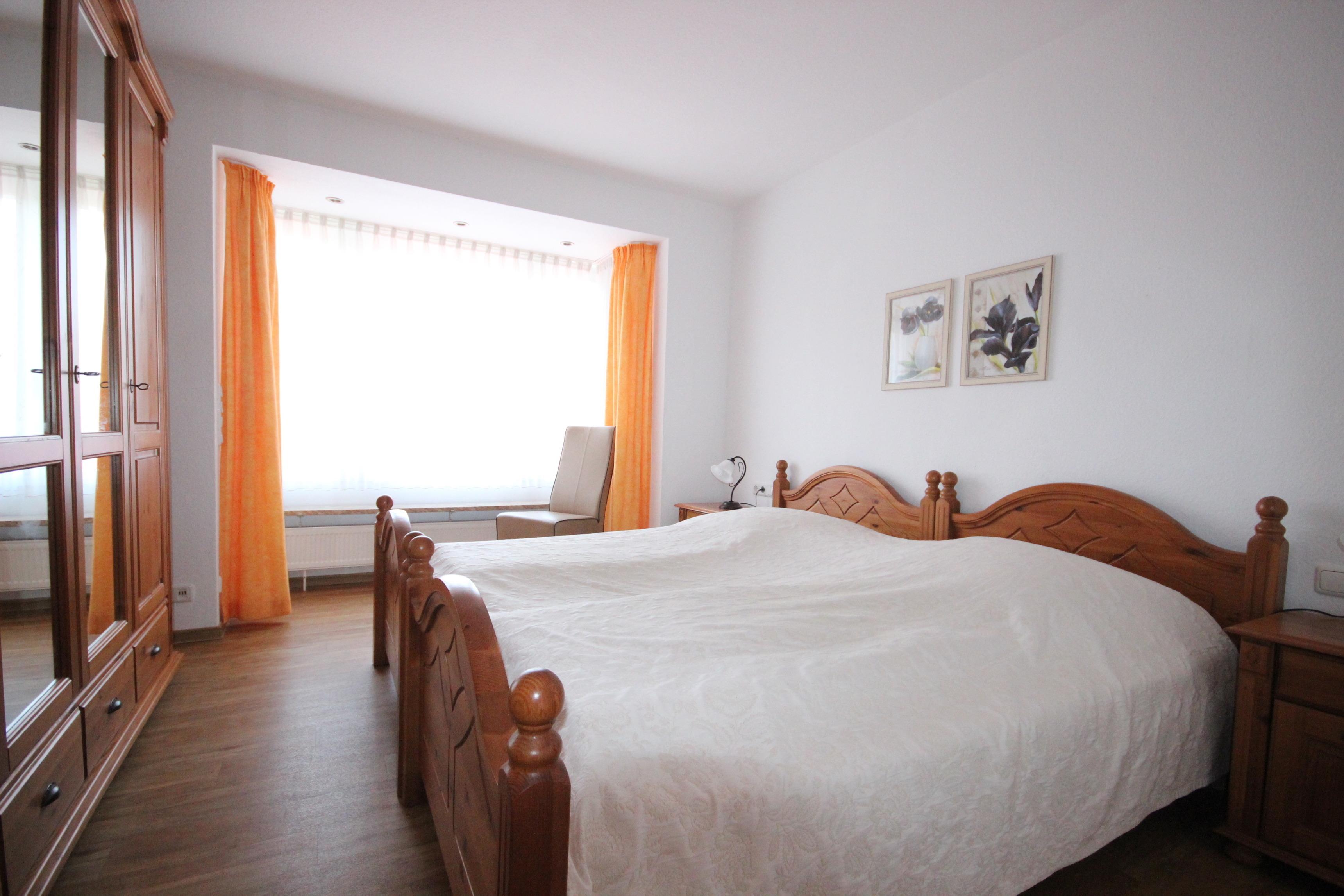 Das 2. Schlafzimmer ist möbliert mit Doppelbett & Kleiderschrank.