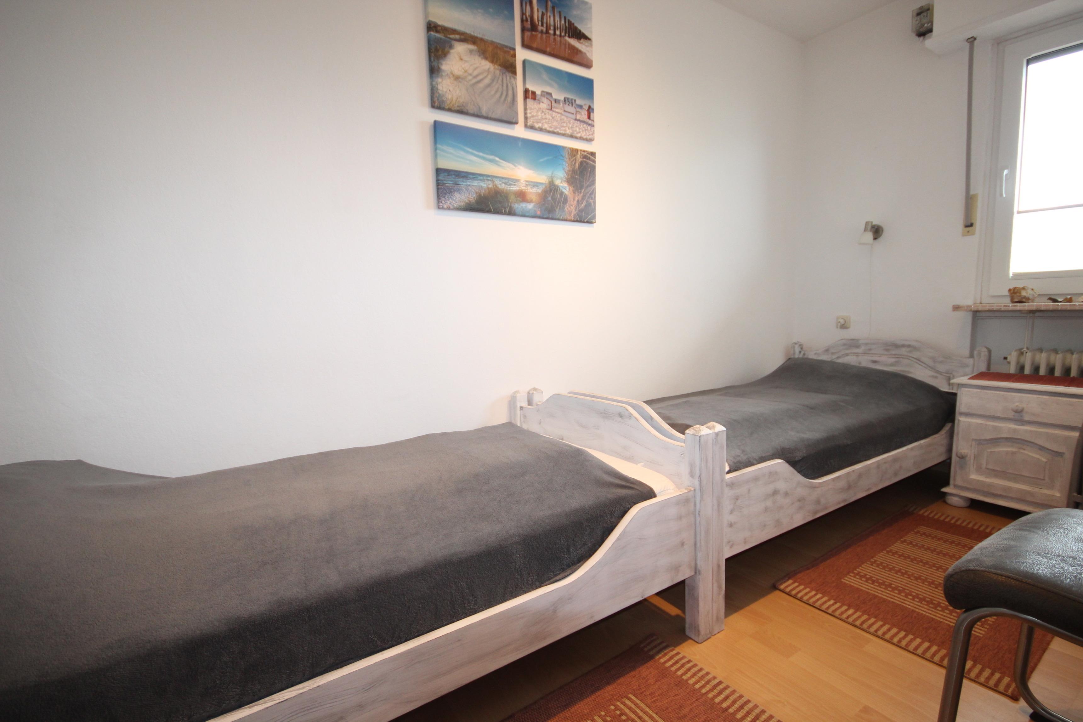Im 2. Schlafzimmer stehen zwei Einzelbetten & Kommode zur Verfügung.