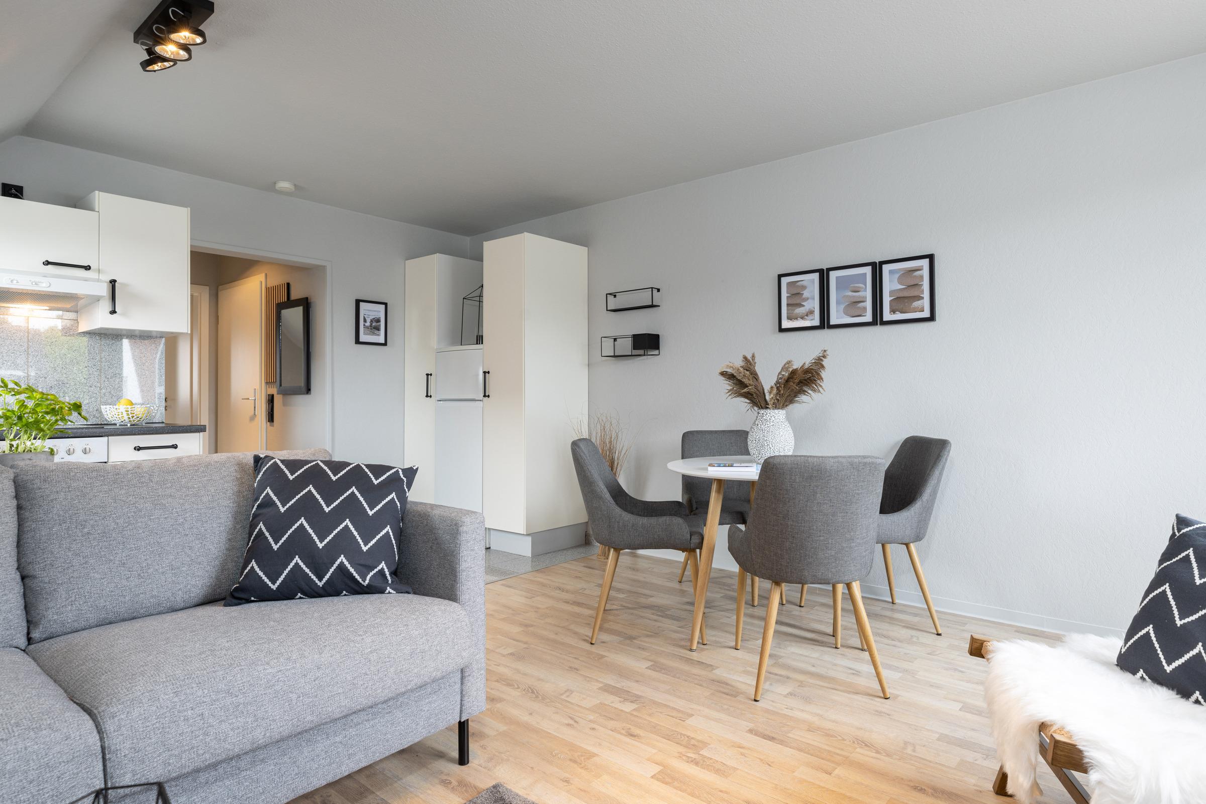 Egal ob Klein-Familie, Pärchen, Freunde oder Solo-Urlauber - bis zu 3 Personen können sich über einen hellen Wohnraum mit einladend modernem und bequemem Schlafsofa zum Wohlfühlen freuen.