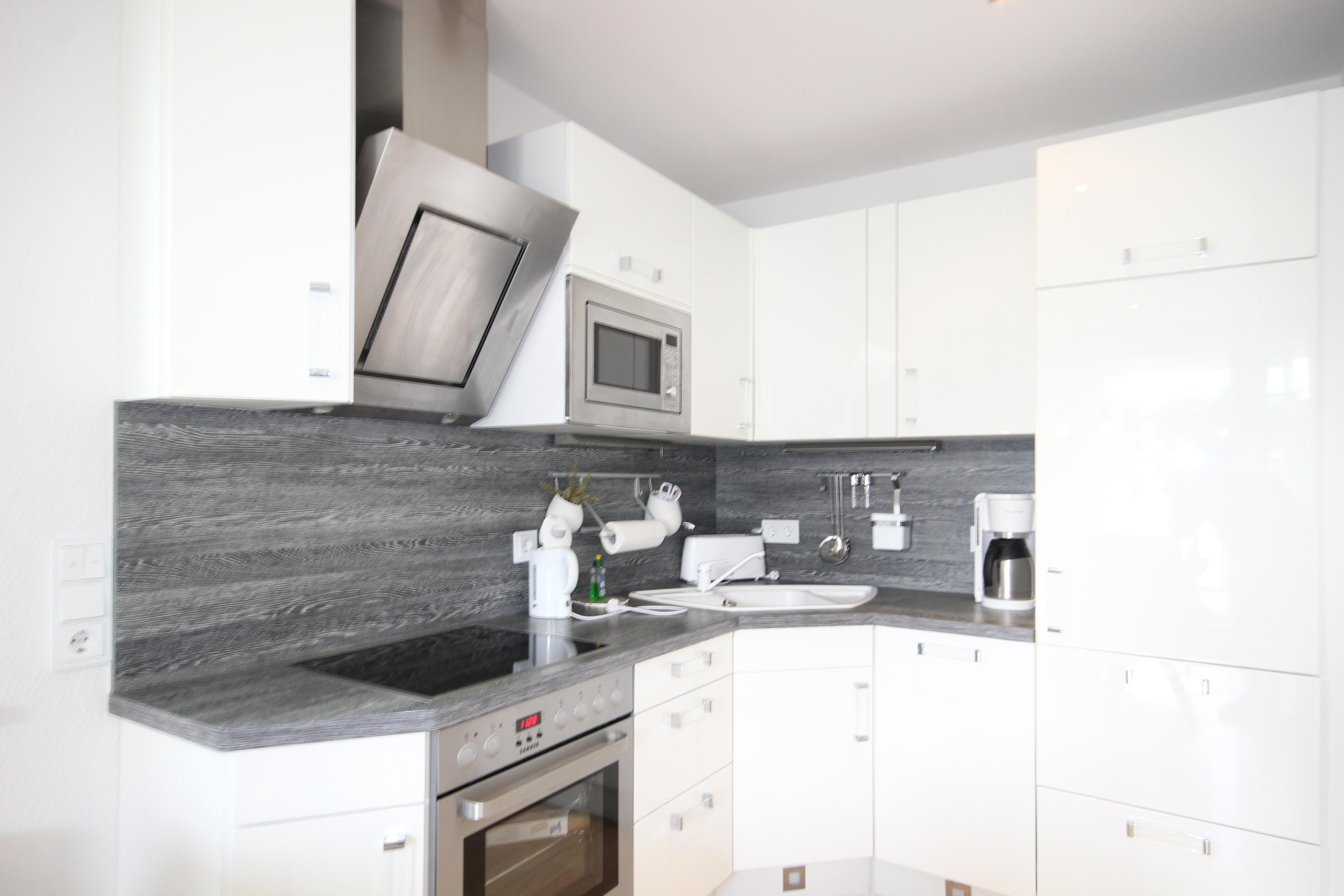 Eine Küche die keine Wünsche offen lässt - Geschirrspüler, Mikrowelle, Cerankochfeld, Backofen, Kühlschrank mit Gefrierfach sowie alle üblichen Küchengeräte sind vorhanden.