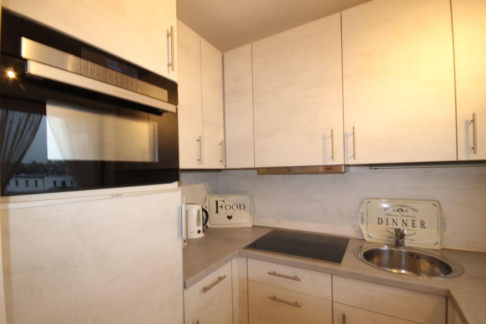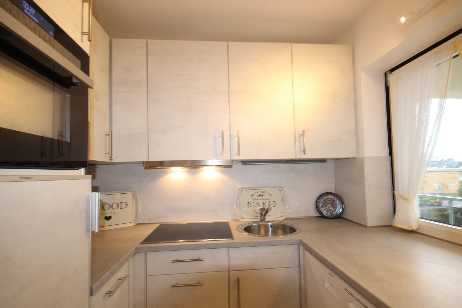 Die separate neueingebaute Küche ist ausgestattet mit Spüle, Geschirrspüler, Kühlschrank mit Gefrierfach, 4 Platten Ceran-Kochfeld, Mikrowellen-Gerät und allen sonstigen üblichen Küchengeräten.
