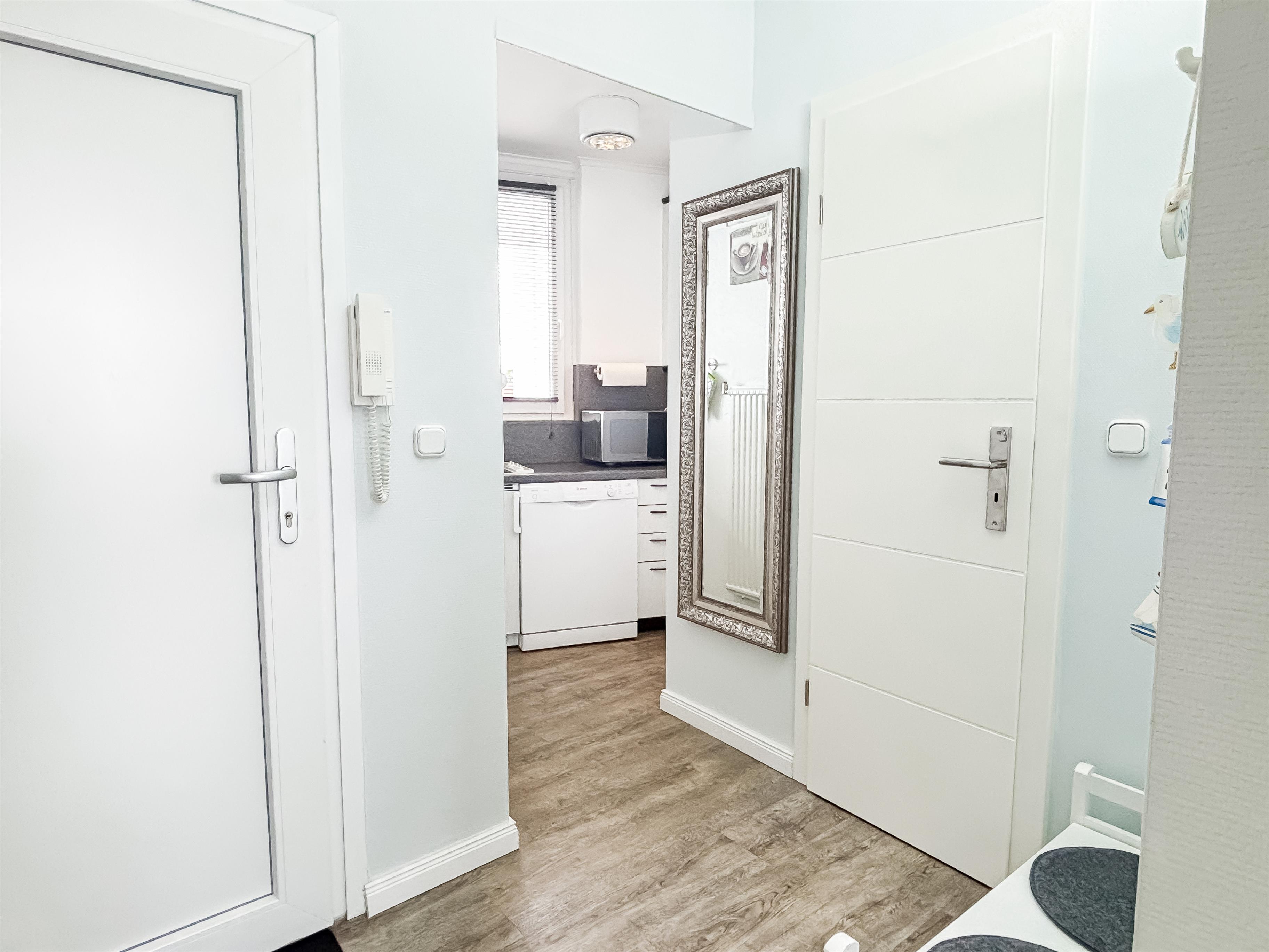 Die Wohnung ist mit Designboden versehen und verfügt über einen geräumigen Einbauschrank und eine Garderobe.