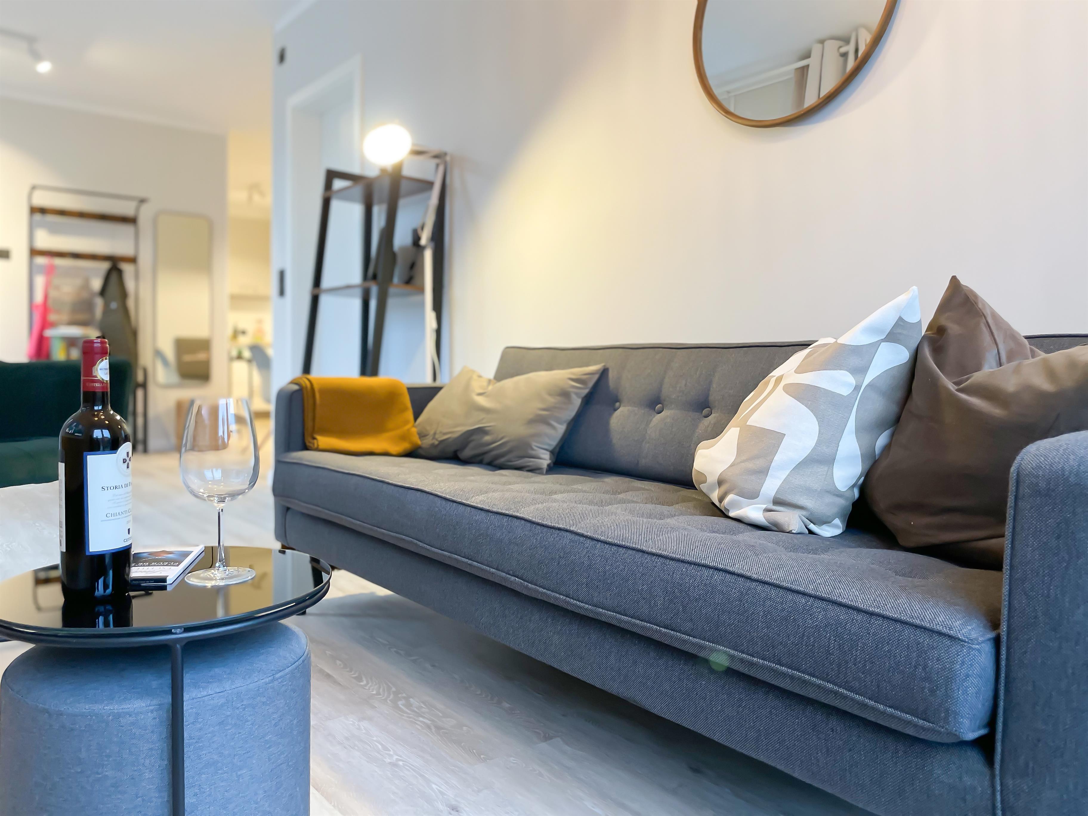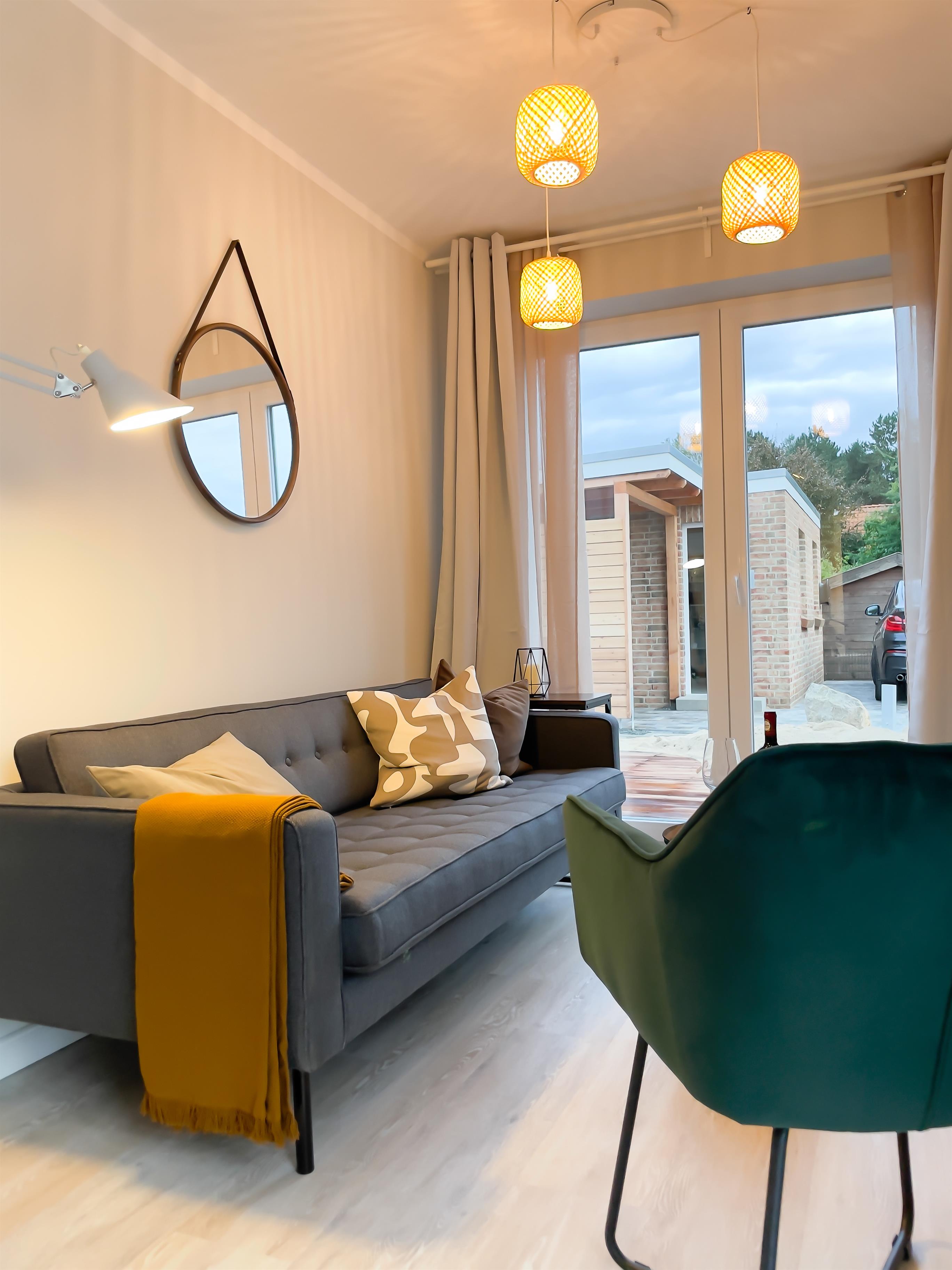 Auf 60 qm empfangen Sie ein stylischer Wohnraum mit angrenzendem Komfort-Koch-Essbereich sowie zwei modern eingerichtete Schlafräume für insgesamt vier Personen.