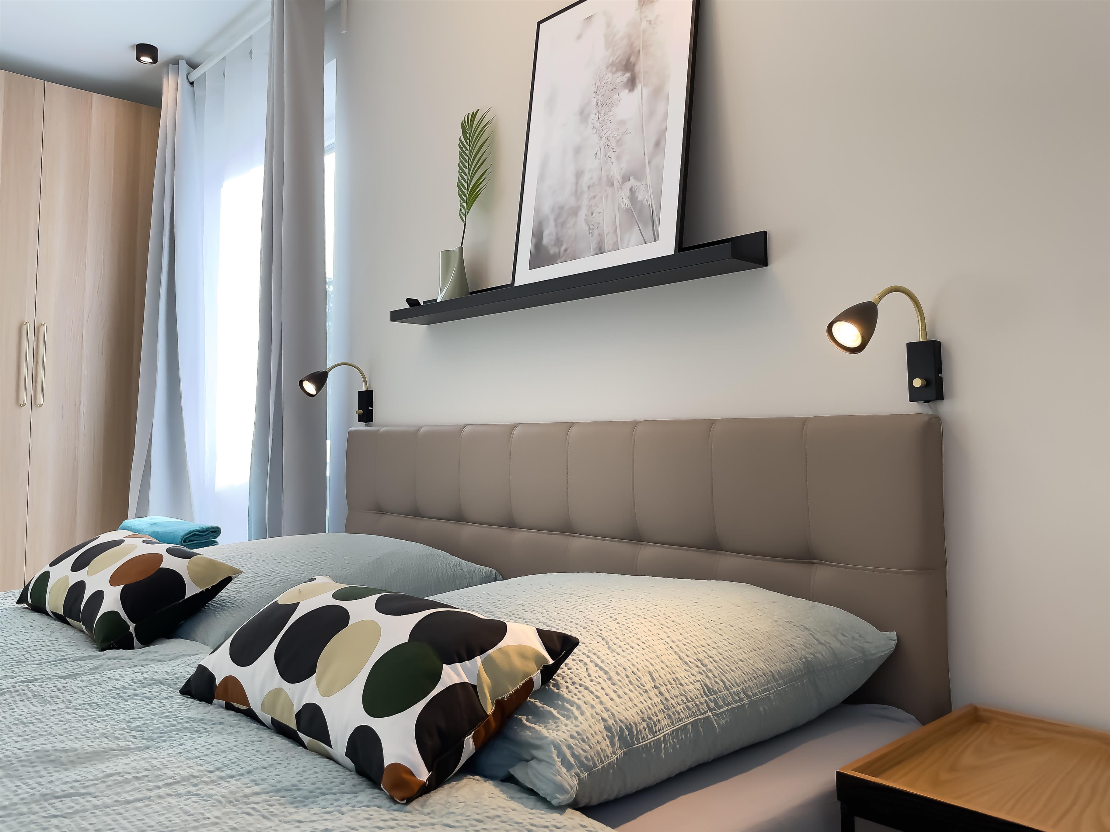 Strandnahes Design-Apartment in Grömitz mit Balkon, moderner Ausstattung und Komfortküche für entspannte Ostseeferien.