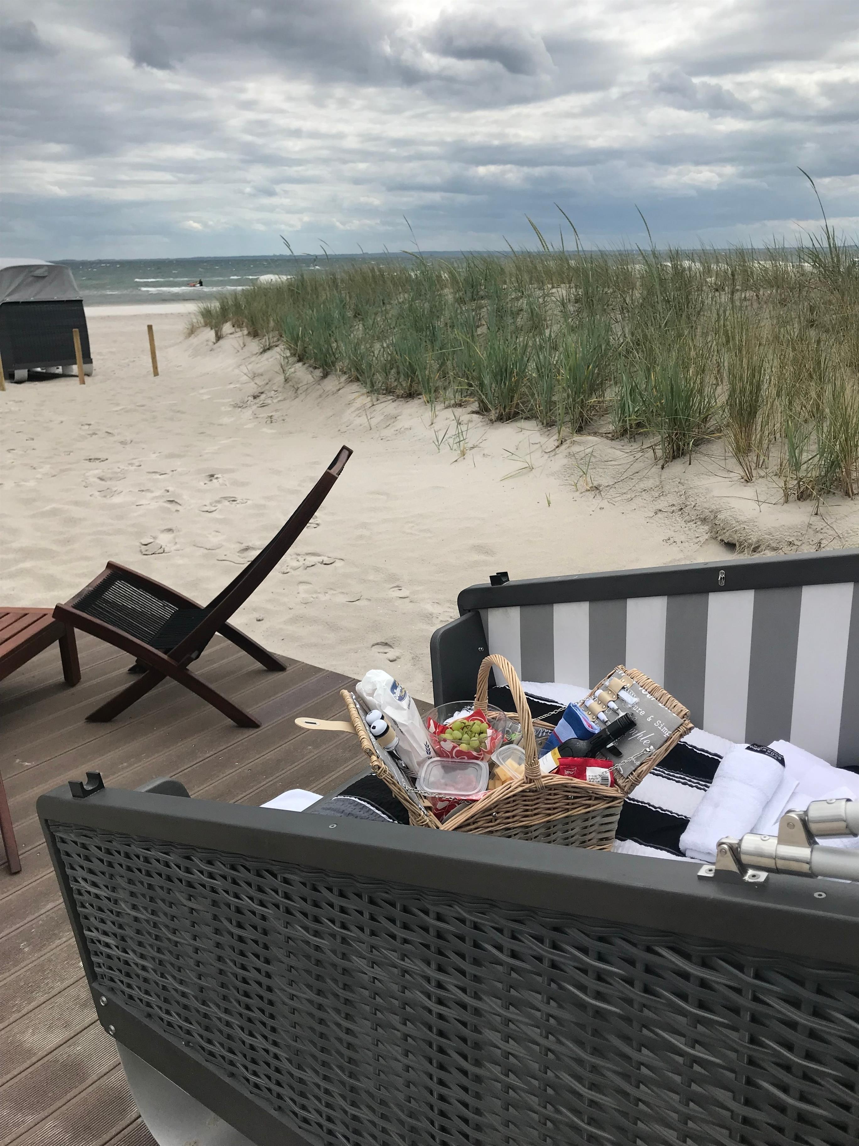 Einmal in die Sterne blicken und romantisch zu Zweit eine ganze Nacht am Strand verbringen. Der Korb steht nah an der Düne im Windschutz mit Blick auf die Ostsee.