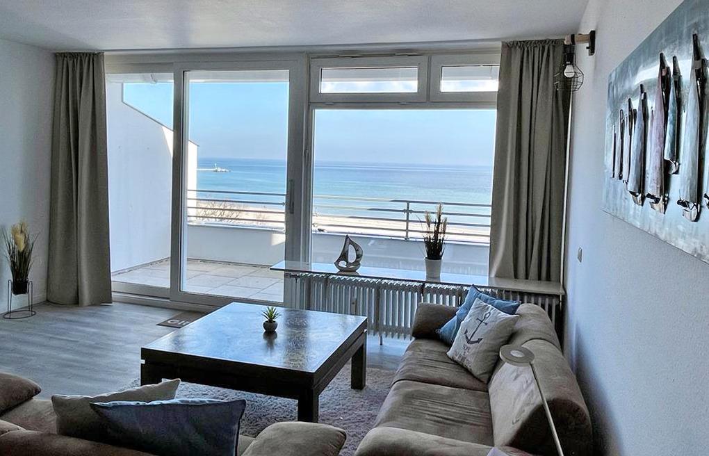 Moderne Ferienwohnung Casa Miramar 7.16 in Grömitz mit Meerblick, Balkon und eigenem Strandkorb direkt am Strand.