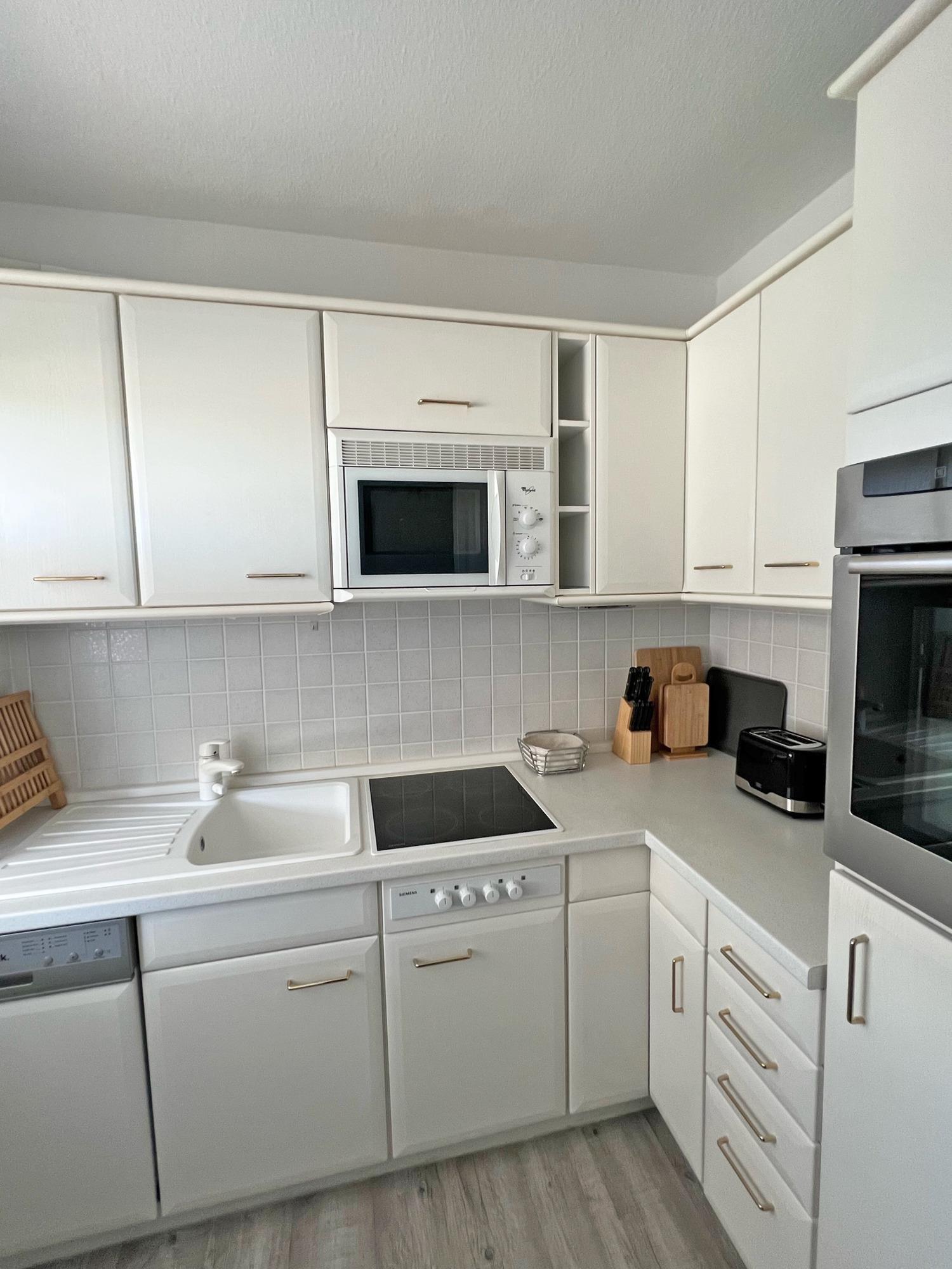 Ein heller, freundlicher Vinyl Bodenbelag in Design Plankenoptik wurde in der gesamten Wohnung neu ausgelegt. Die Fenster sind im Jahr 2024 erneuert worden, alle Fenster verfügen jetzt über Außenjalousien.