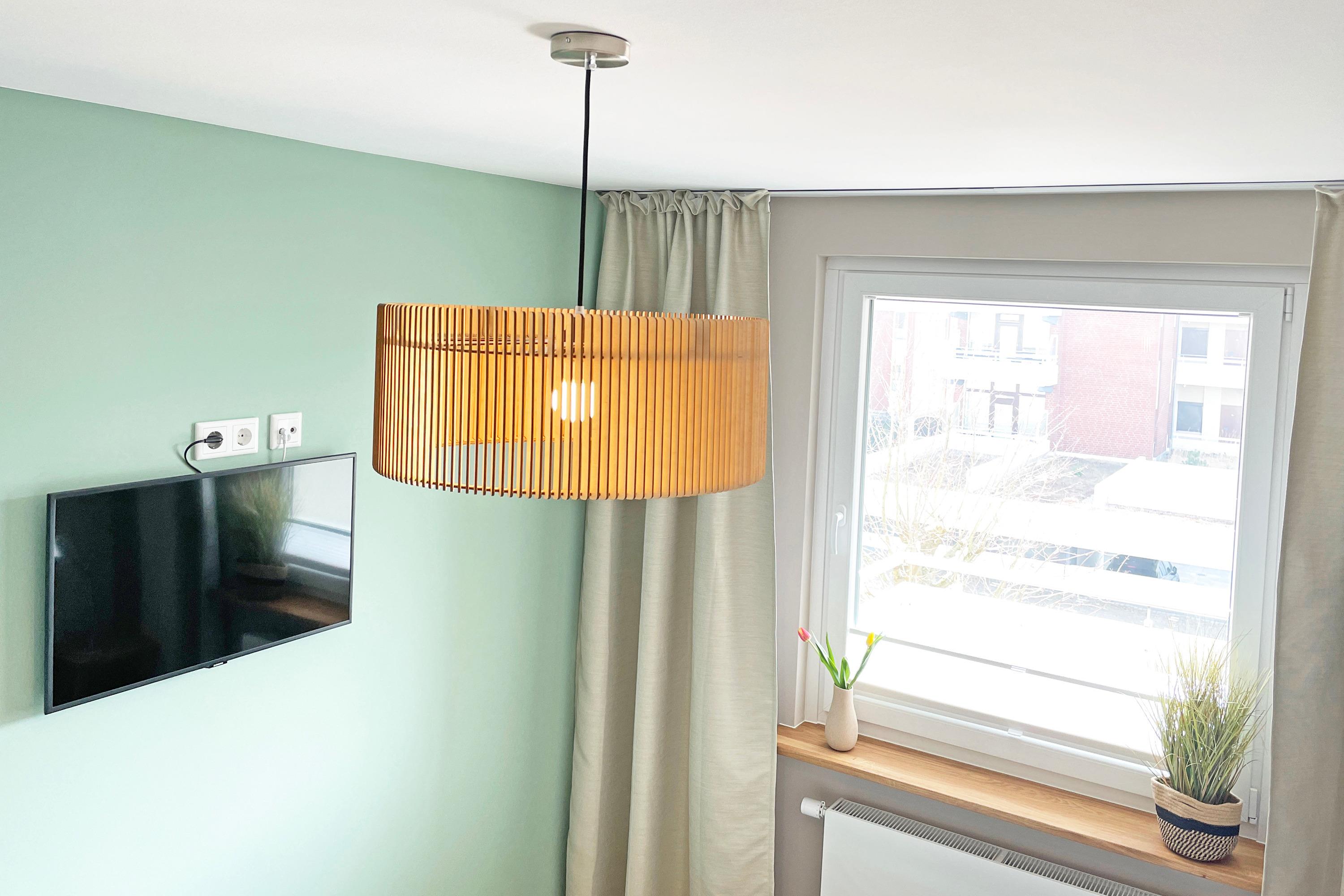 Eine hochwertige Einrichtung sorgt für Komfort und Gemütlichkeit, hier können Sie sich zu allen 4 Jahreszeiten wohlfühlen. Entspannen Sie im hellen, modernen und gemütlichen Wohnzimmer. Ein Highend Samsung Neo QLED 4K Flachbild- TV (43 Zoll) sorgt im Wohnzimmer für Unterhaltung, falls das Wetter mal nicht so mitspielen sollte. Zusätzlich steht Ihnen diese Audioanlage zur Verfügung: Philips DAB+ Radio M2505/10 Digital Radio (DAB+/UKW, Multipairing-Bluetooth, 3,5-mm-Audioeingang, 2,75-Zoll-Full-Range-Treiber). Moderne Plissees bieten einen perfekten Sonnen- und Sichtschutz, und hochwertige Vorhänge sorgen nachts für angenehme Verdunklung. Vom Wohnbereich geht es direkt auf den sonnigen Süd- Balkon, auf dem Sie auch morgens schon Ihren ersten Frühstückskaffee genießen können.