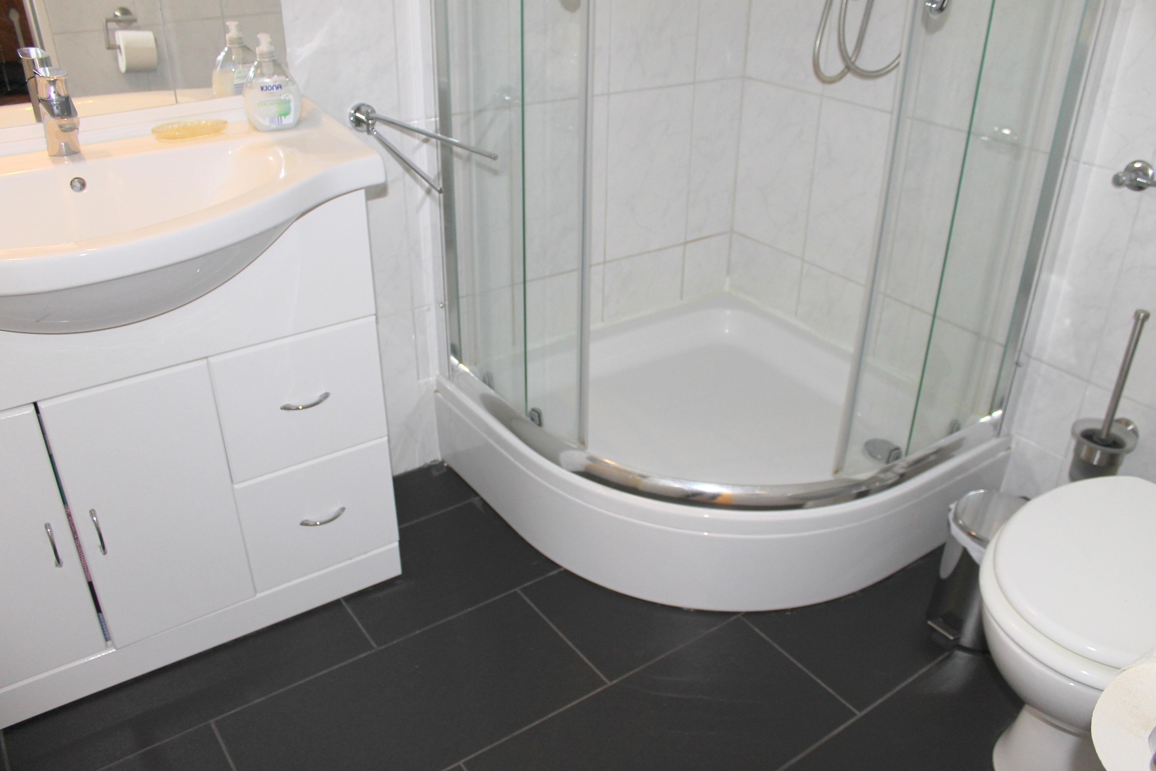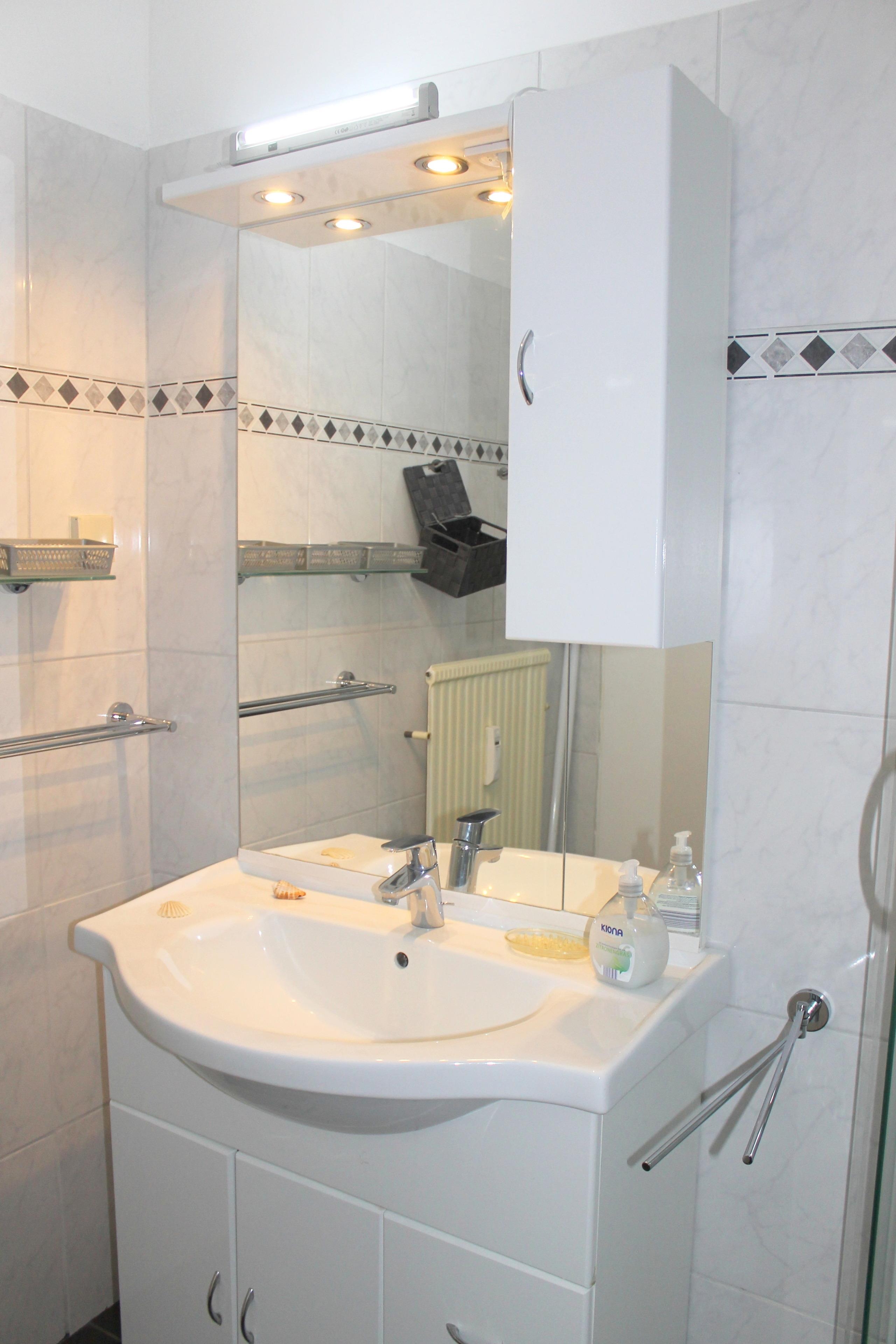 Die Küche ist mit einem 4 Plattenherd, Backofen, Geschirrspüler, Mikrowelle, Toaster, Kaffemaschine, Kühlschrank mit Gefrierfach, Töpfen, Pfannen und ausreichend Geschirr und Besteck ausgestattet. Das separate Bad mit Runddusche geht von der Eingangsdiele ab.