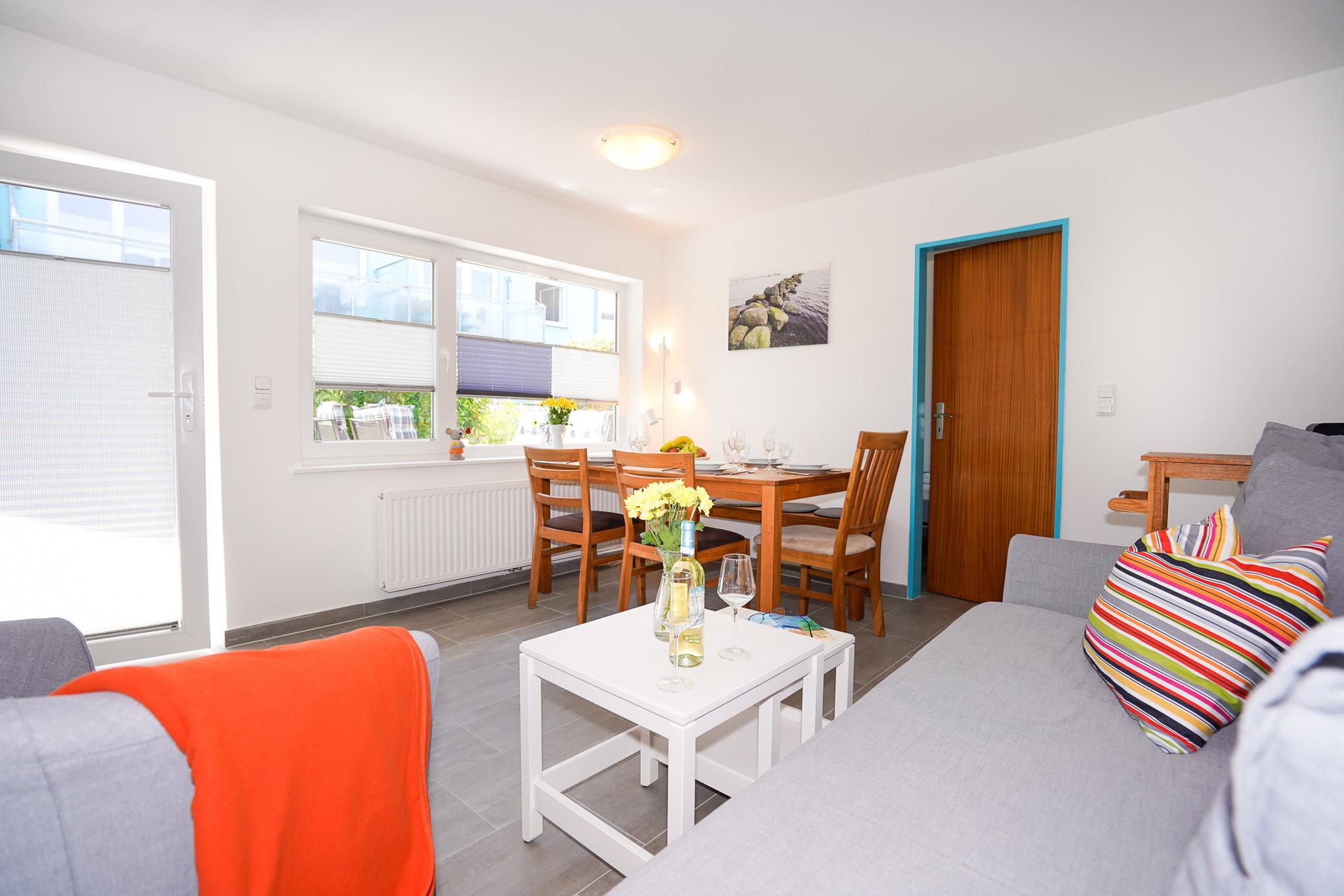 Tagsüber genießen Sie die Sonne am naheliegenden Strand oder auf Ihrer privaten Terrasse mit angrenzender Rasenfläche.