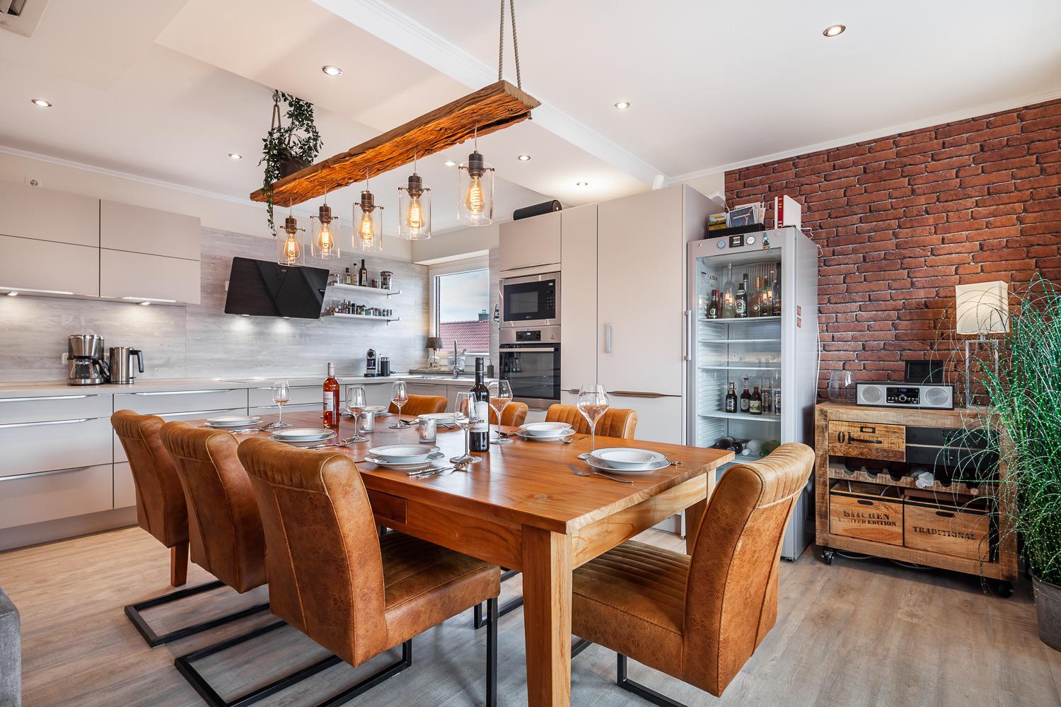 Die moderne und erstklassig ausgestattete offene Küche lässt keine Wünsche offen. Neben Geschirrspülmaschine, Backofen, Induktionsherd, Kühl- und Gefrierschrank und Mikrowelle erleichtern viele Kleingeräte das tägliche Leben.