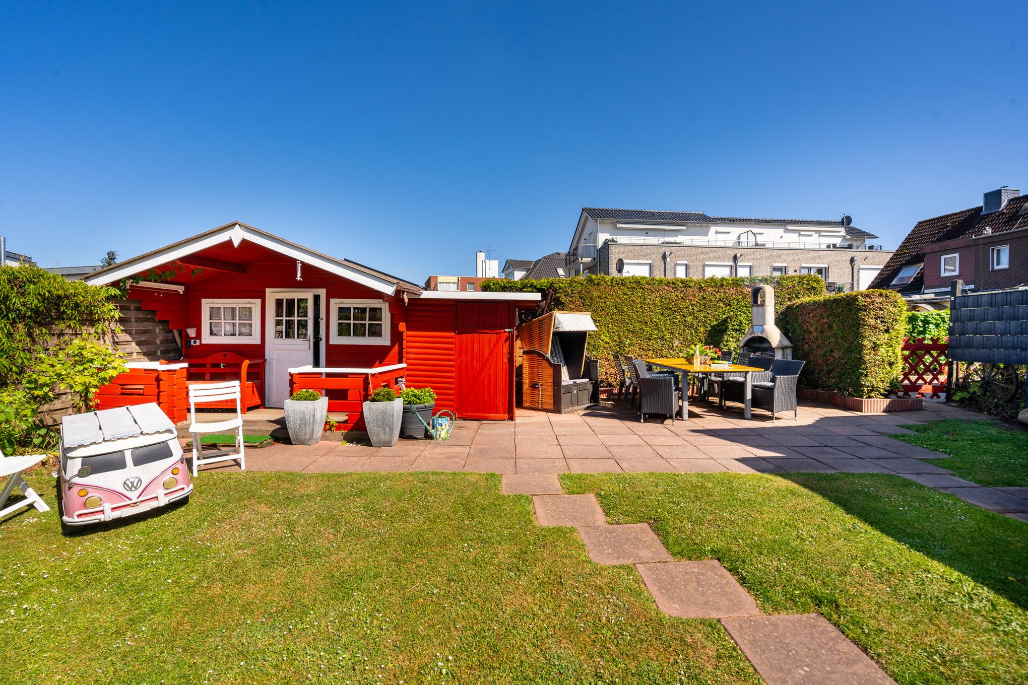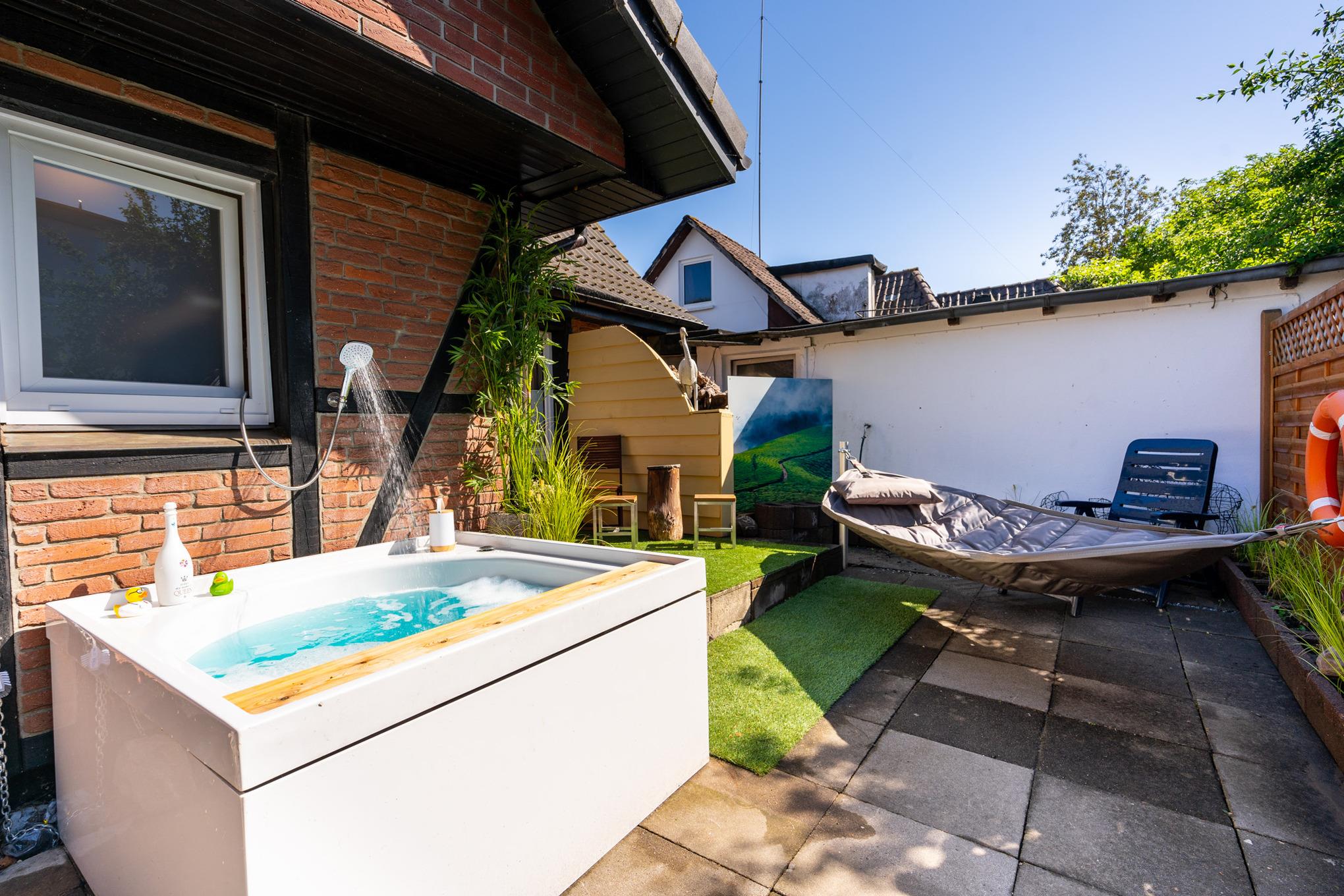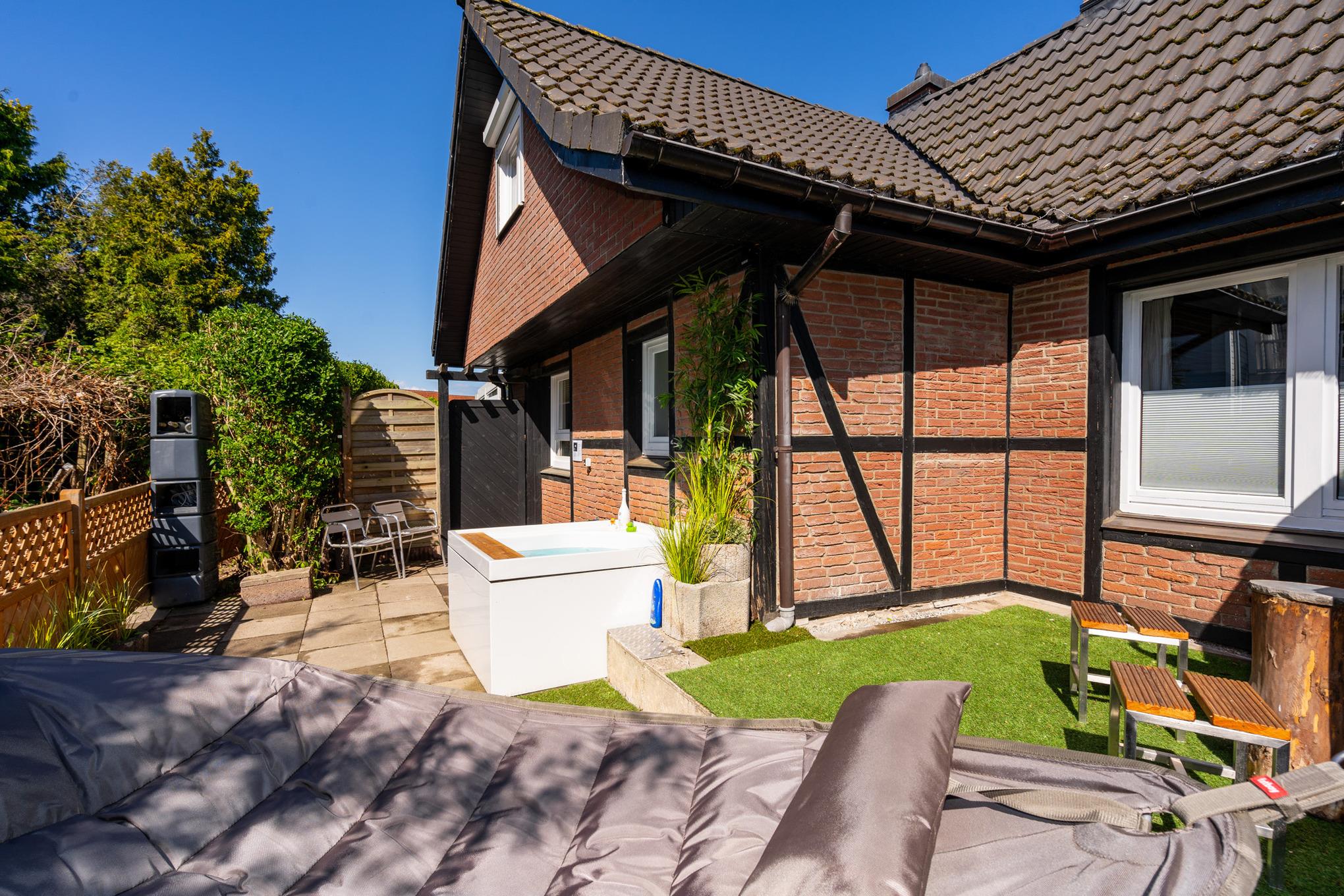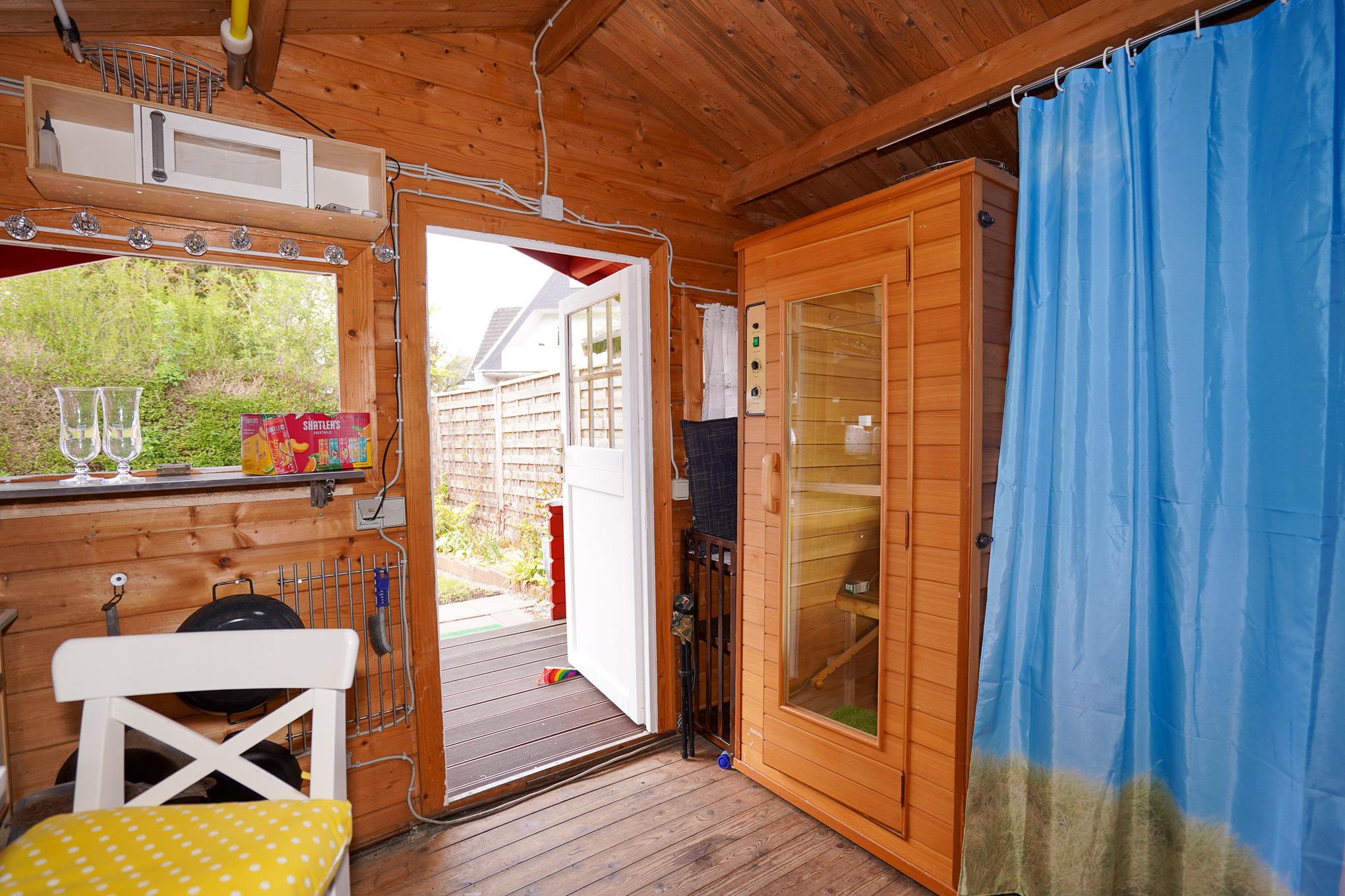 Dieses Ferienhaus steckt voller Highlights, welche Ihren Urlaub zu einem ganz besonderen Erlebnis machen werden. Beginnen wir mit dem eingewachsenen Garten, in welchem Sie den ganzen Tag die Sonne genießen können. Egal ob in Ihrem Strandkorb, auf der Liege, im Bereich der großzügigen Sitzgruppe vor dem gemauerten Kamin, auf der Terrasse Ihres Gartenhauses, welches über eine kleine "Bar" und eine Infrarotsauna verfügt oder einfach auf der gepflegten Rasenfläche.