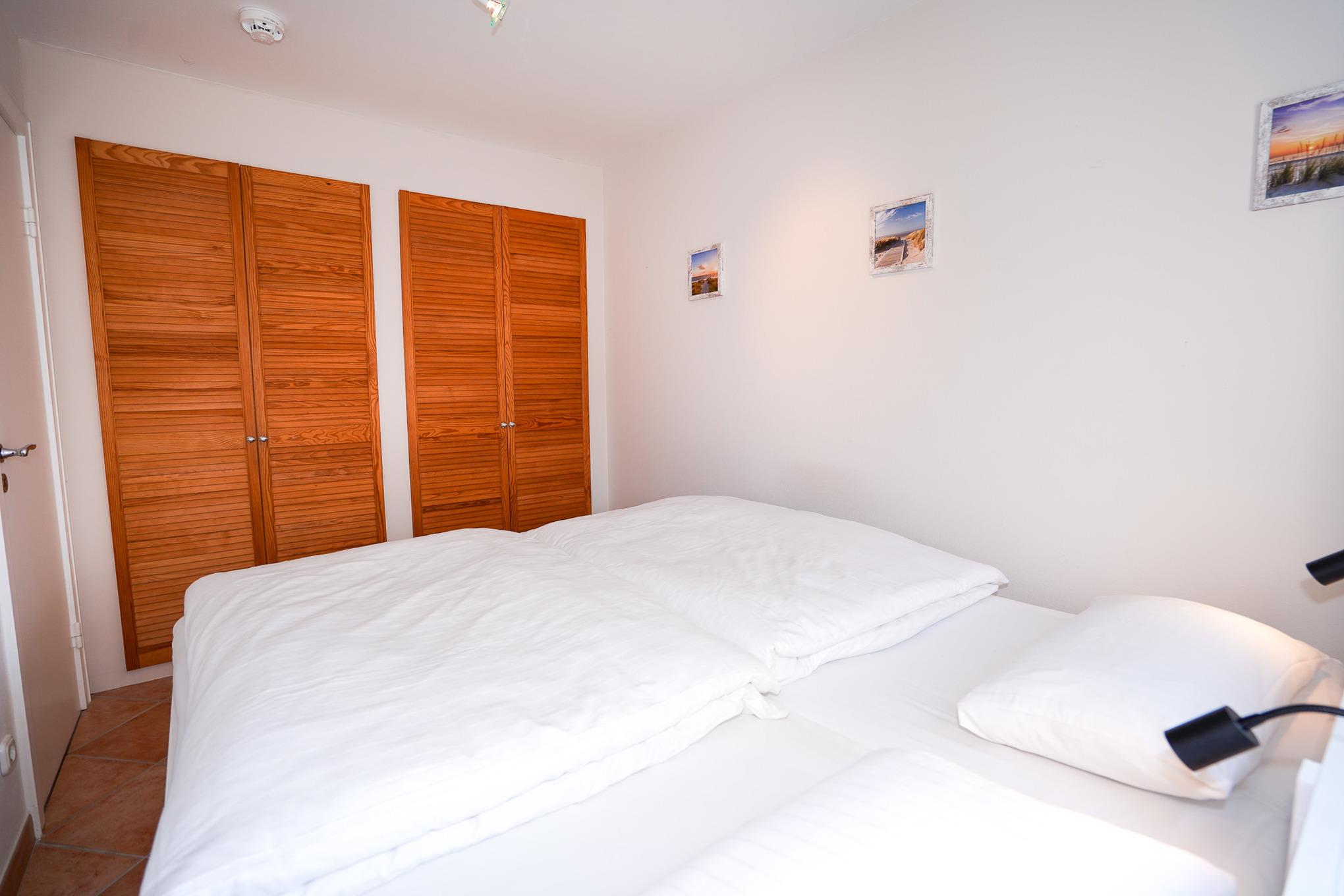 Die geräumige Wohnung ist großzügig eingerichtet. Zwei gemütliche Schlafzimmer im maritimen Stil bieten Platz für bis zu vier Personen. Auf dem überdachten Balkon oder dem gemütlichen Sofa finden Sie Entspannung nach einem ausgiebigen Tag am Strand.