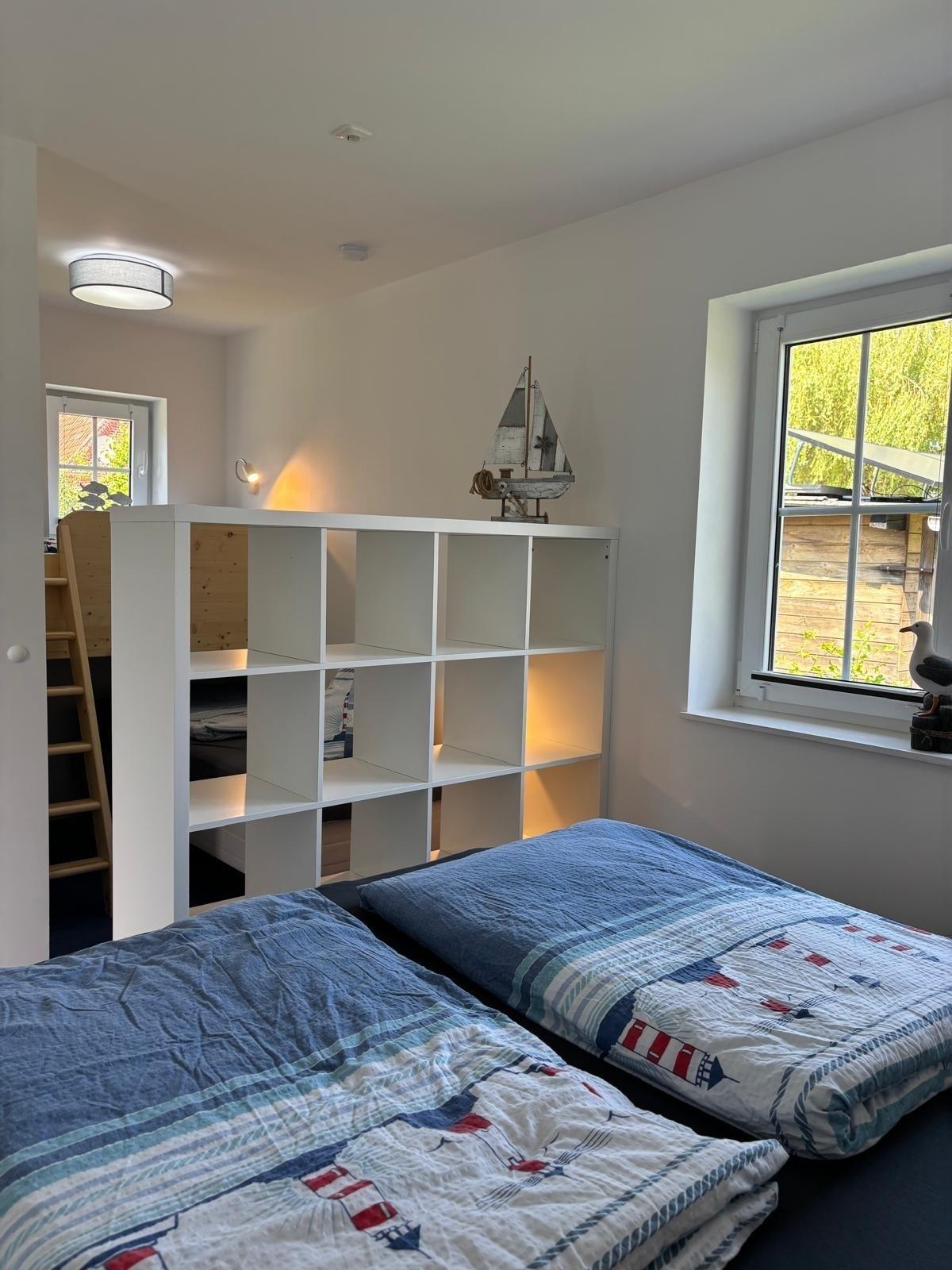 Die Treppe in das Obergeschoss vom Haupthaus ist recht steil, für kleine Kinder oder Senioren eventuell nicht geeignet. Bitte schauen Sie sich hier das entsprechende Foto an.