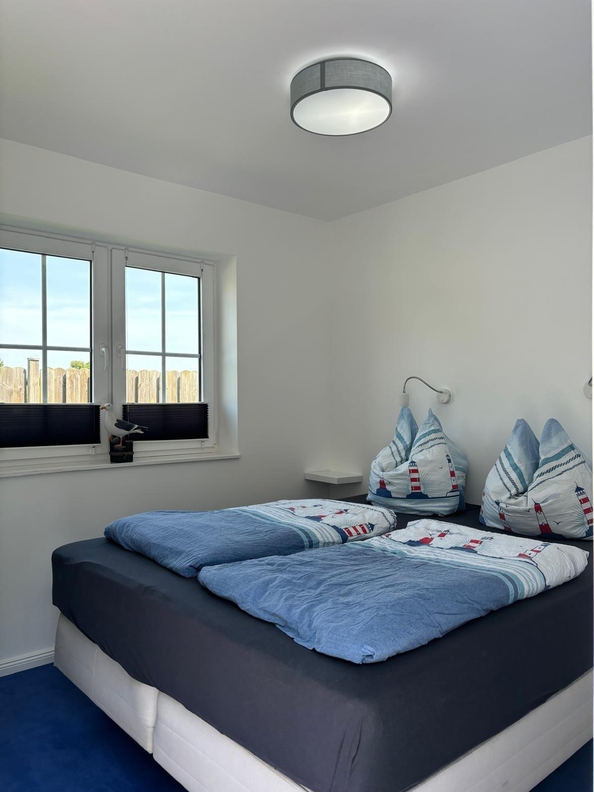 Das Haus bietet Platz für bis zu 6 Personen, hat 3 Schlafzimmer (alle mit Dachschräge), ein Bad mit Dusche, einem modernen Wohn-Essbereich mit vollausgestatteter Küche im Haupthaus. Vom Wohnzimmer gelangt man auf eine kleine Terrasse mit eingezäuntem Garten. Hinter dem Haus befindet sich der große Garten, der ebenfalls komplett eingezäunt ist. Der Garten verfügt über eine großzügige Terrasse mit Gartenmöbeln, Sonnenliege und einem Grill mit viel Platz.