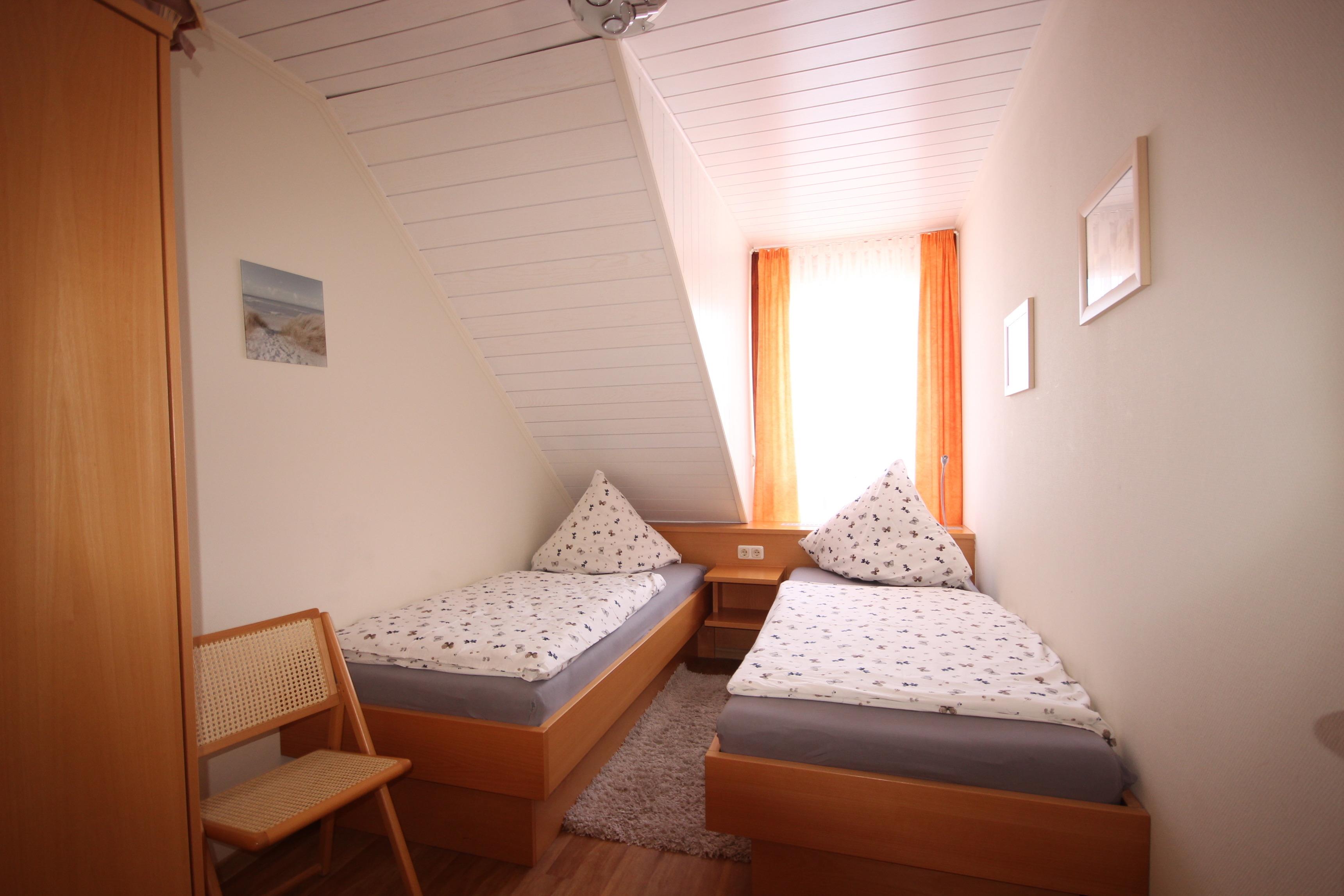 Im kleinen Schlafzimmer befinden sich zwei komfortable Einzelbetten sowie ein Kleiderschrank.