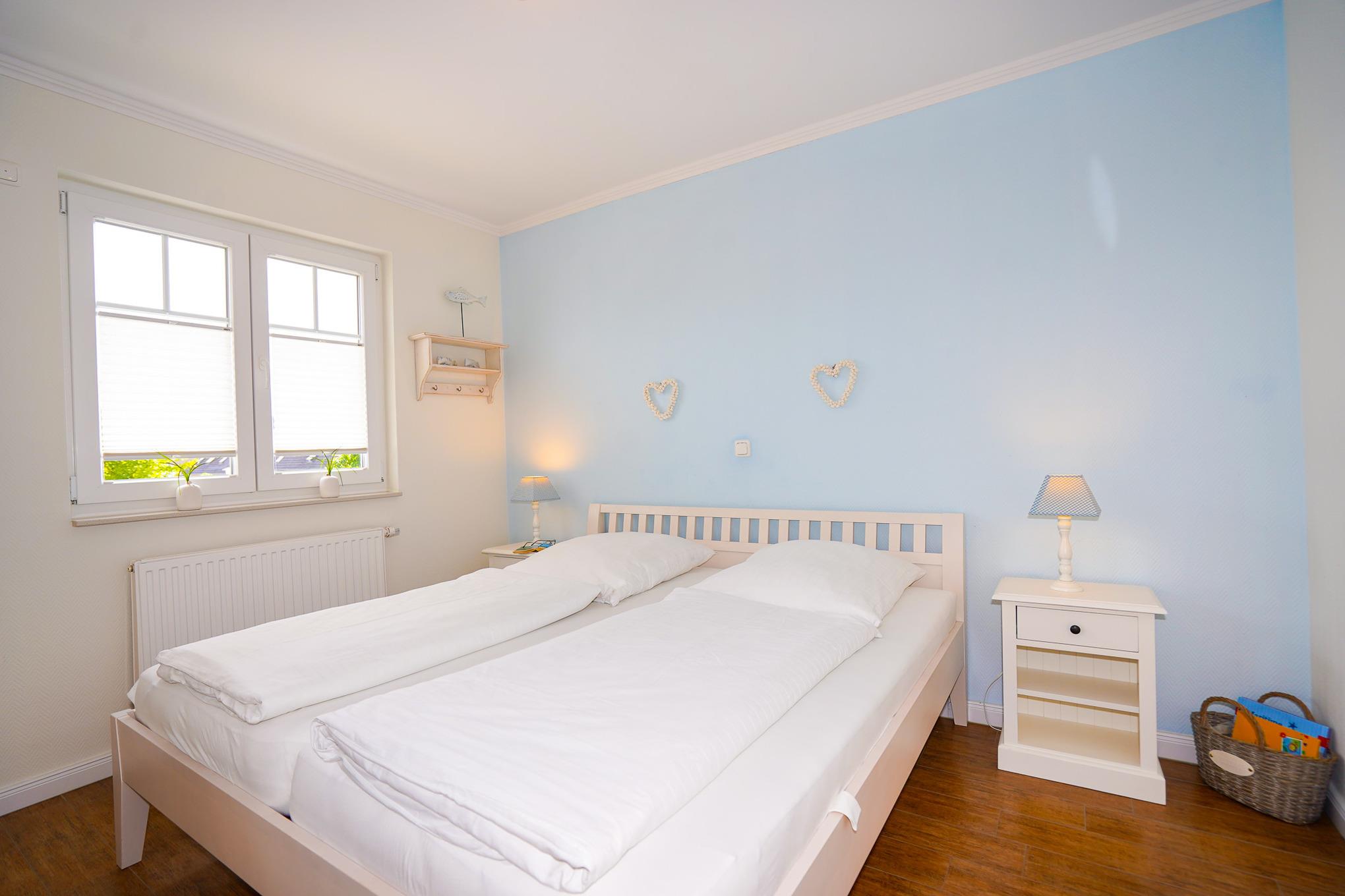 Ein Schlafzimmer ist mit einem Doppelbett und Kleiderschrank ausgestattet. Im zweiten Schlafzimmer befinden sich zwei bequeme Einzelbetten (100 x 200 cm) und Einbauschränke. Auch Kinder werden sich hier wohlfühlen, da hier ein zweiter TV-Flachbildschirm, Kinderbücher und -spielzeug vorhanden sind.