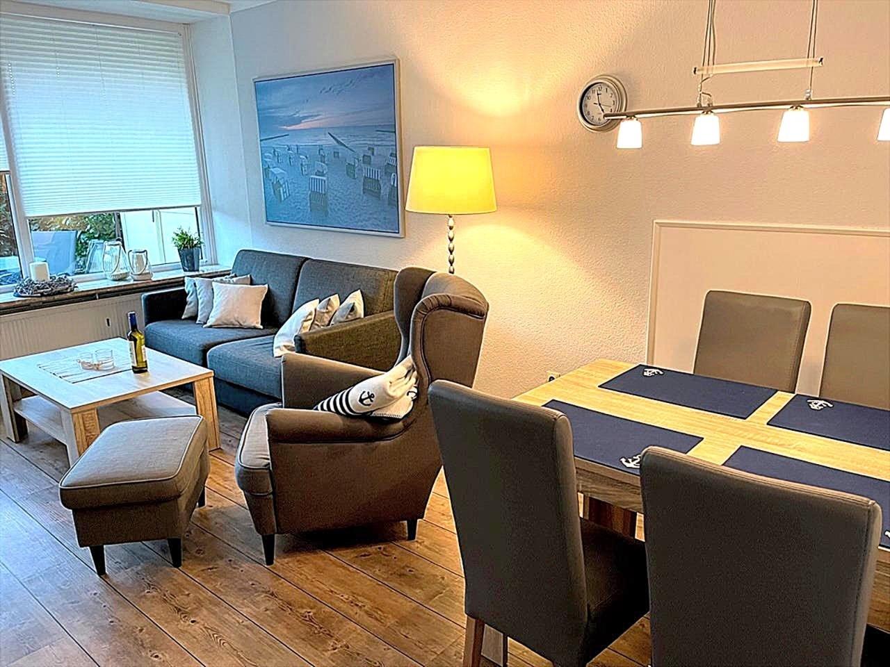 Das gemütliche Wohnzimmer verfügt über eine Couchgarnitur, einen schönen Essplatz, Flachbild-TV und einer Terrasse mit Süd-Ausrichtung im Hochparterre.