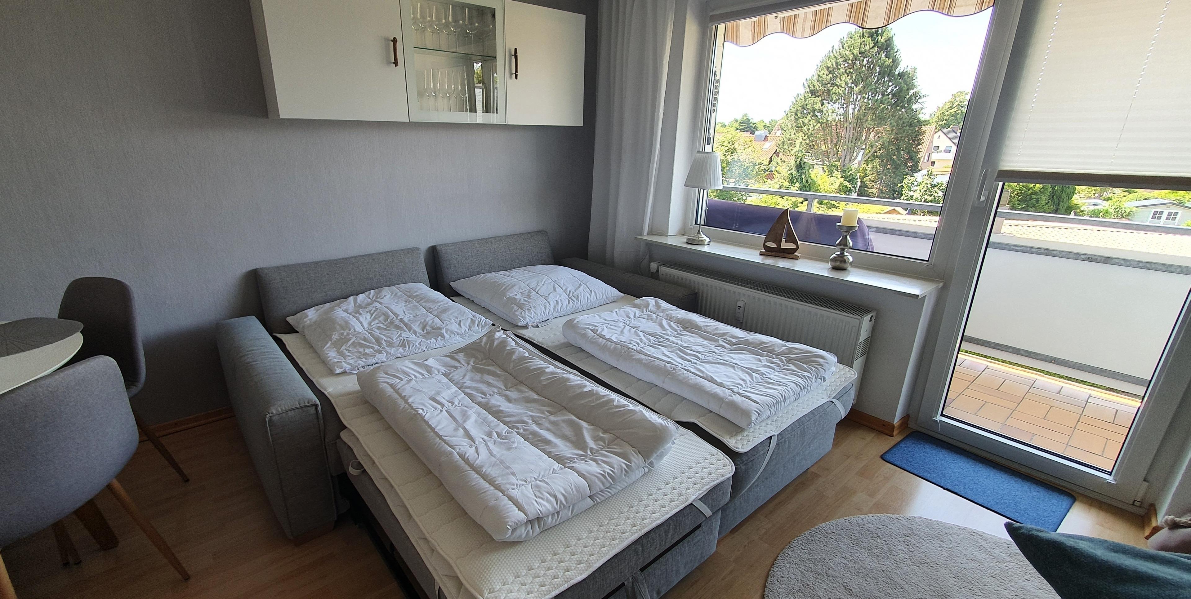 Die schöne gemütliche 1,5-Zimmer-Ferienwohnung (ca. 31 qm klein) befindet sich in einer ruhigen Sackgasse am Rande von Grömitz.