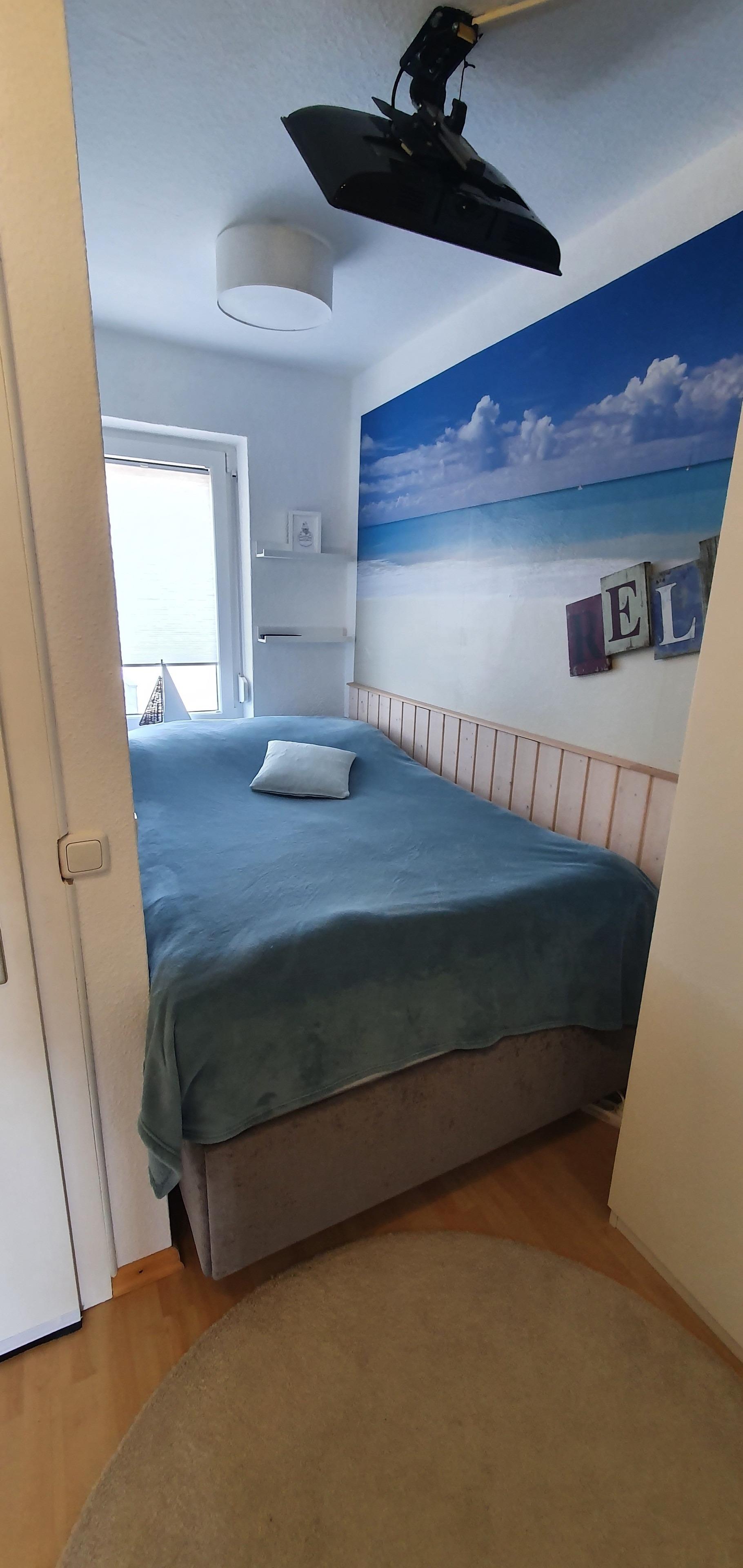 Es befindet sich eine Schlafnische mit einem 120×200 cm Bett und im Wohnzimmer eine neuen (Schlaf)Couch 180×200cm Liegefläche. Es schließt sich nahtlos der Essbereich mit Esstisch an. Daneben befindet sich die offene Küche. Die neue Küchenzeile ist mit einer Geschirrspülmaschine, Kühlschrank mit Gefrierfach, Herd und Cerankochfeld, Kaffeemaschine, Wasserkocher, Toaster ausgestattet.