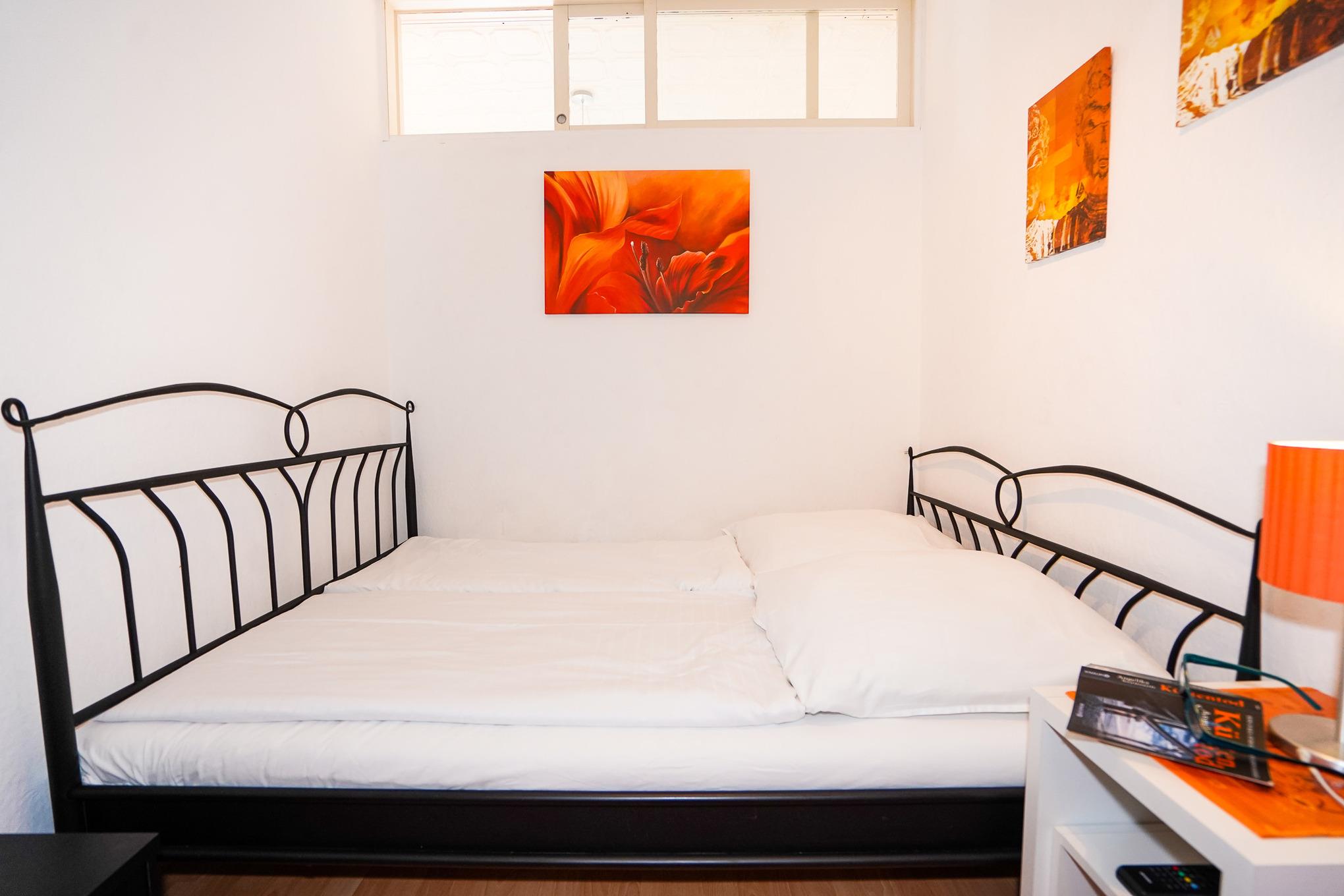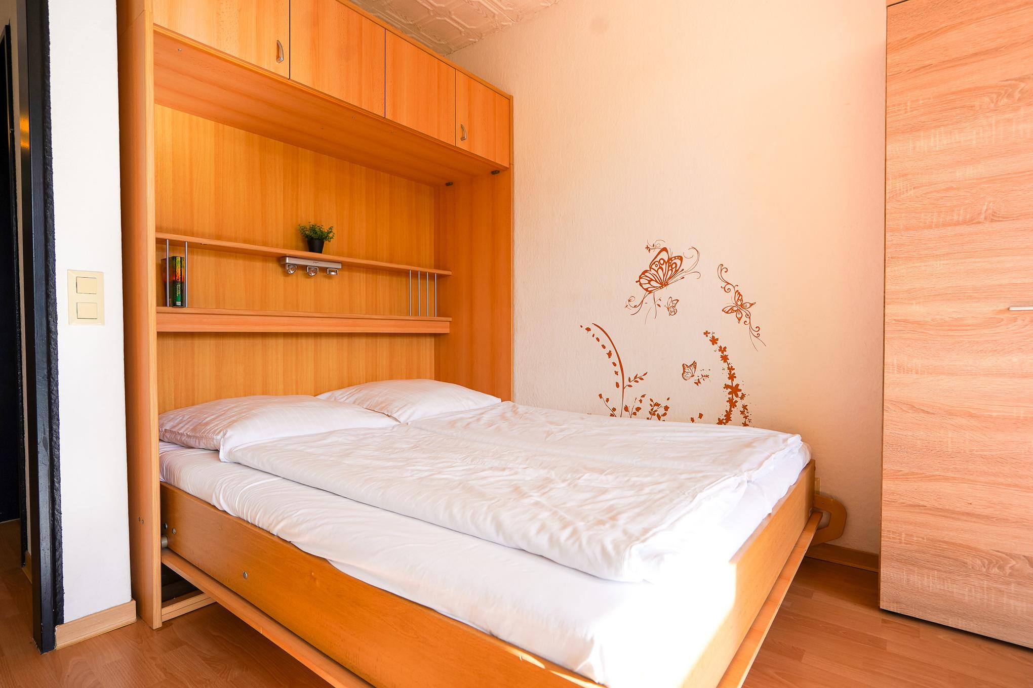 Das Schlafzimmer ist mit einem Doppelbett (140 x 200 cm), einem Kleiderschrank und einem weiteren Fernseher ausgestattet.