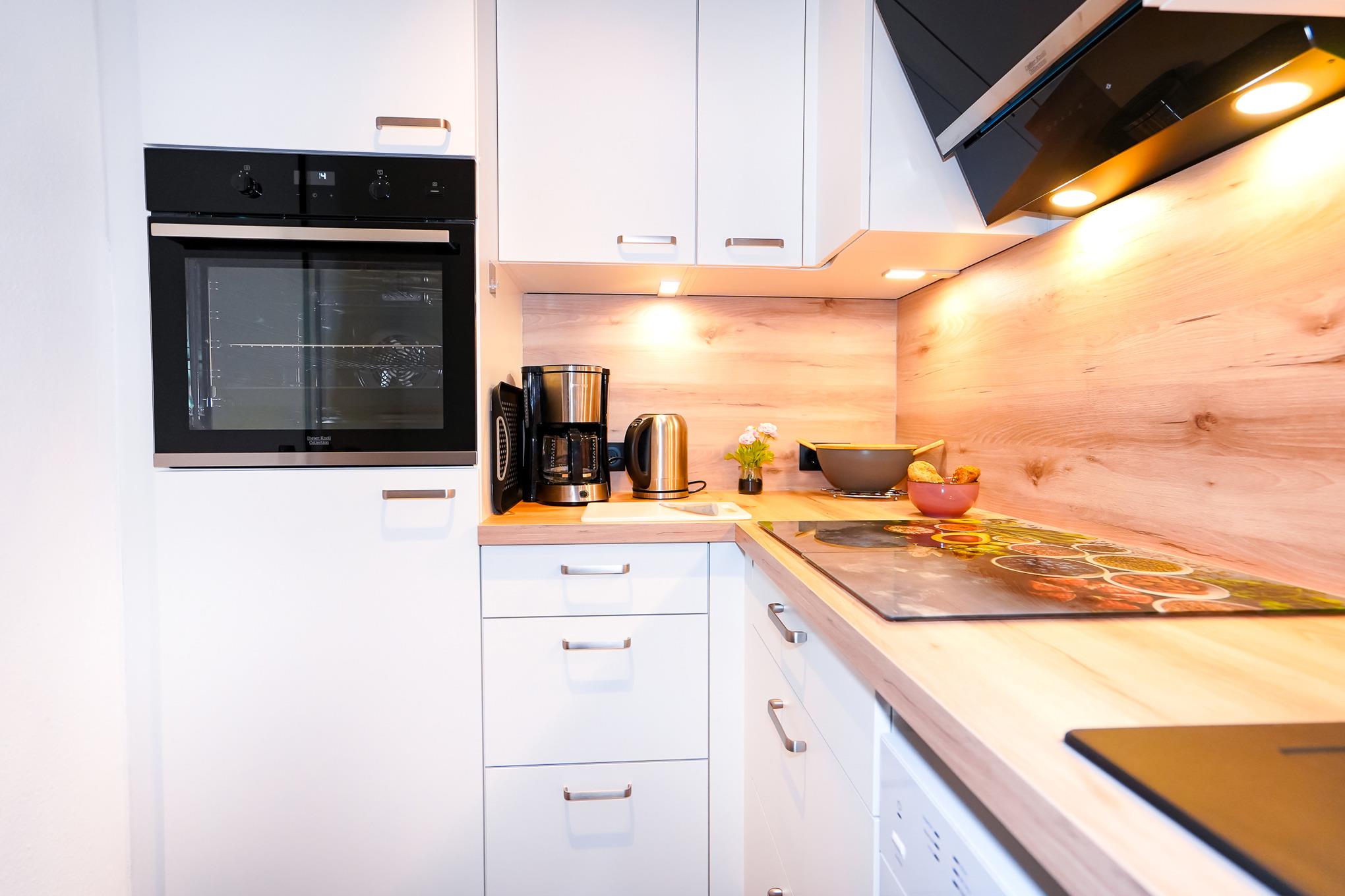 In der vollständig modernisierten Küche finden Sie ein Induktionskochfeld, einen Backofen, Kühlschrank mit Gefrierfach, eine Mikrowelle und eine Spülmaschine vor. Weitere Elektrokleingeräte wie Kaffeemaschine, Toaster, Wasserkocher und Eierkocher runden die Küchenausstattung ab.