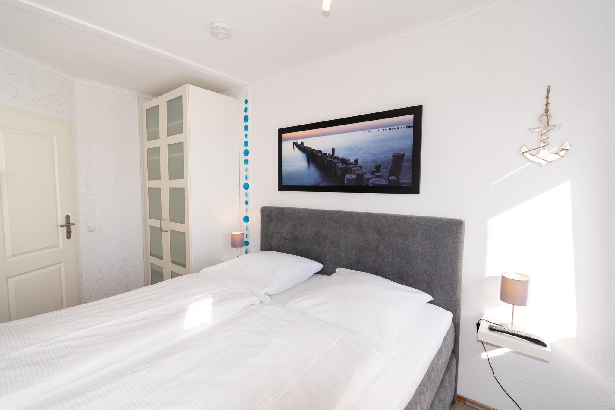 Im separaten Schlafzimmer befinden sich ein neues Boxspringbett (180x200), ein Kleiderschrank und ein weiterer Fernseher. Zwei Türen sorgen für den optimalen Zugang zu beiden Seiten des Bettes.