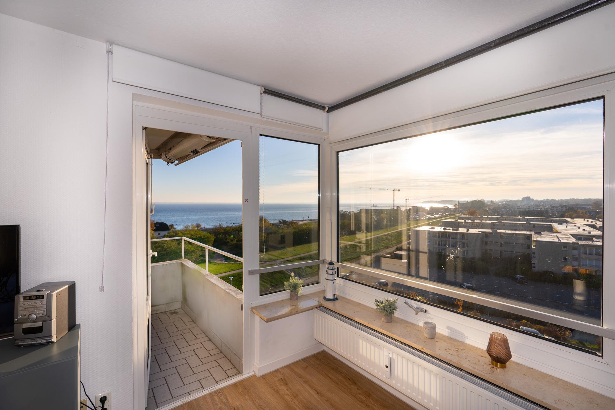 Entspannen Sie nach einem Tag am Strand auf Ihrem nach Süd-Westen ausgerichteten Balkon oder auf dem Sofa mit Blick auf die Ostsee durch die großen Fenster.