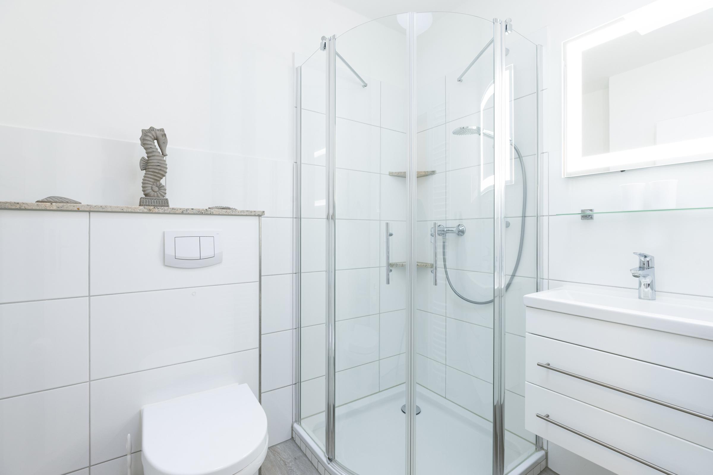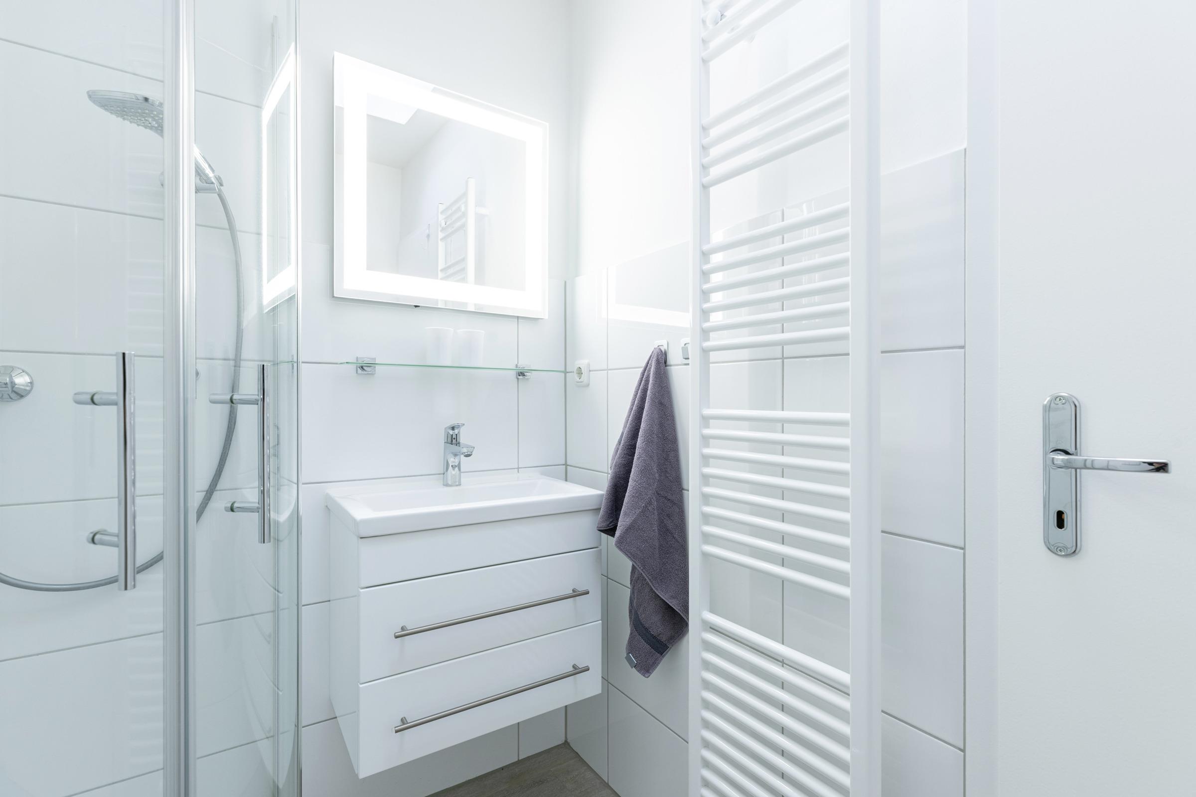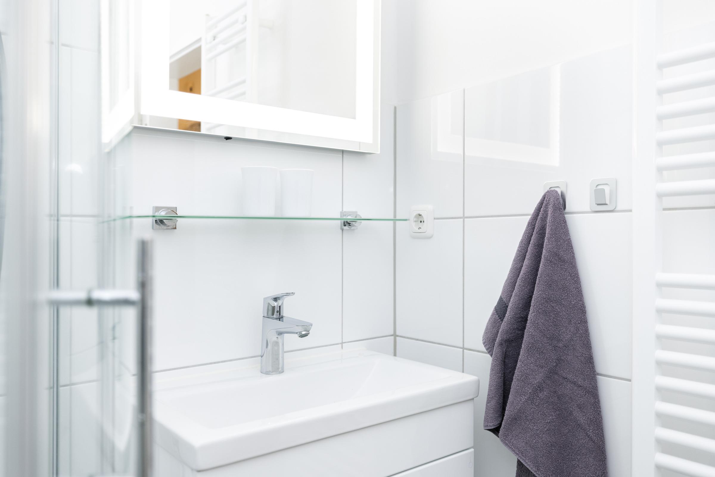 Im Bad stehen Dusche, Waschtisch und Haartrockner zur Verfügung.