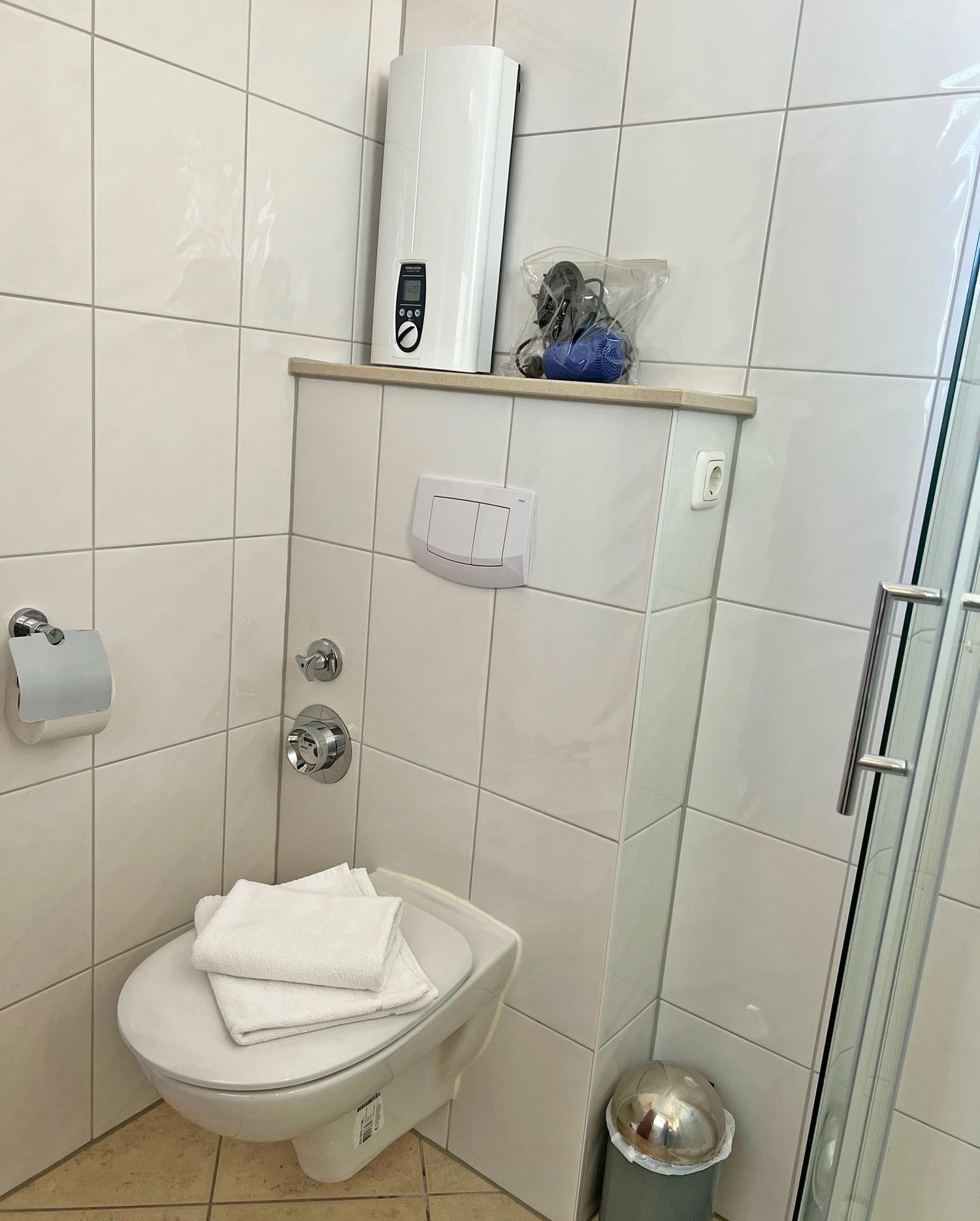 In dem hell gefliesten Bad mit moderner Eckdusche, WC, Waschbecken und beleuchteten Spiegel starten Sie entspannt in den Tag. Alle Räume sind mit Echtholz, bzw. Fliesen ausgestattet.