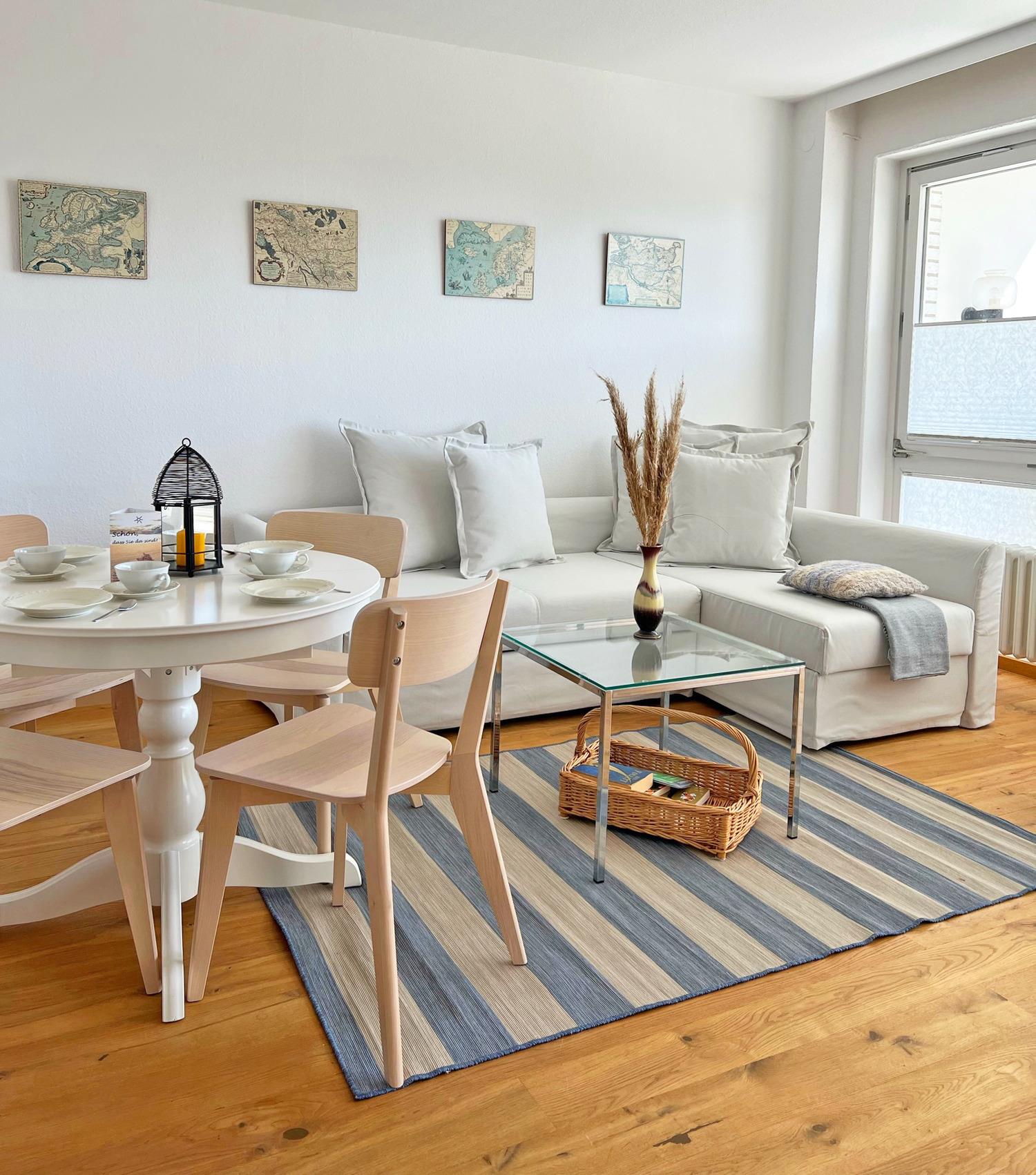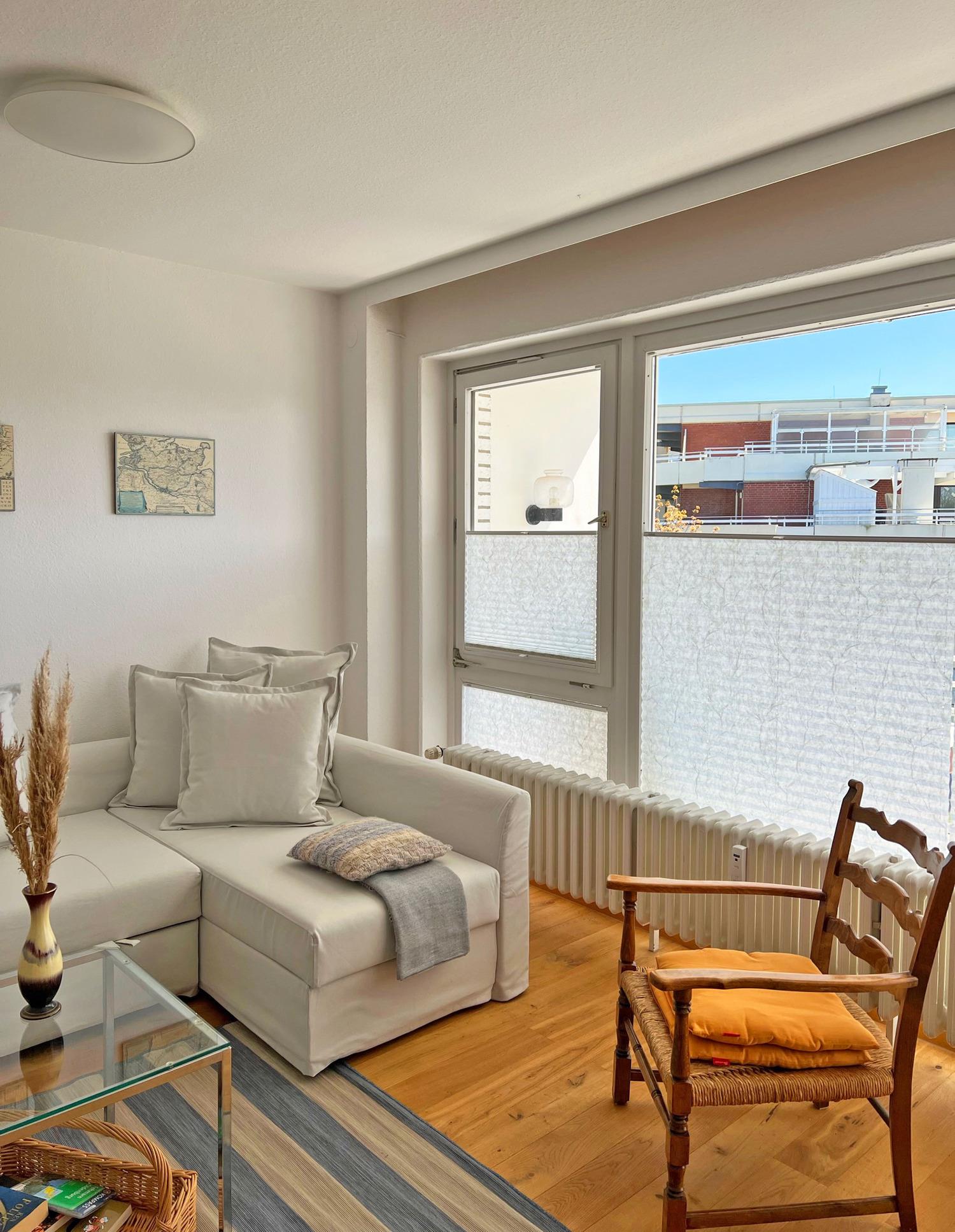 Der Wohnbereich ist hell und freundlich. Die moderne und komfortable Couch bietet Ihnen eine Schlaffunktion (140x200). Ein Flachbild TV und eine Radio/Stereo-Anlage sorgen für Unterhaltung. Ein schicker Esstisch bietet ausreichend Platz. Vom Wohnbereich aus gelangen Sie auf den großzügigen Balkon mit Süd-Ost-Ausrichtung.