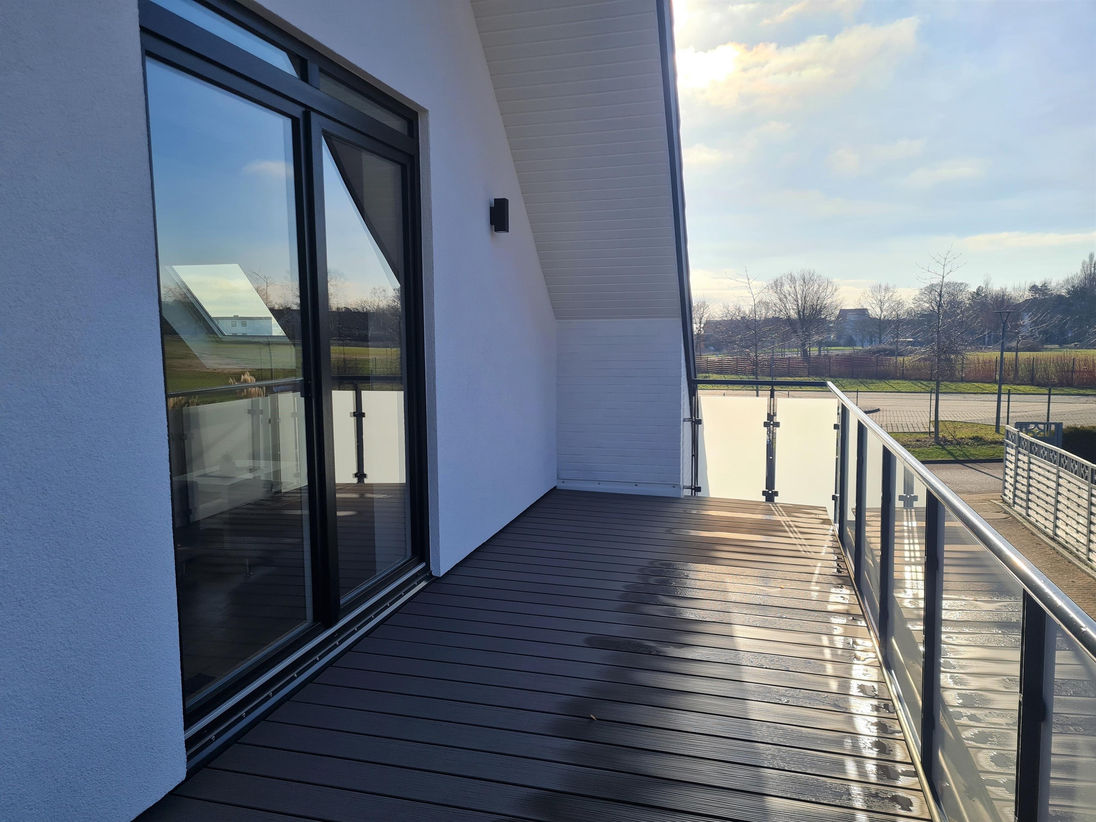 Von dem großen Balkon aus hat man einen Ausblick über Grömitz und die Lübecker Bucht.