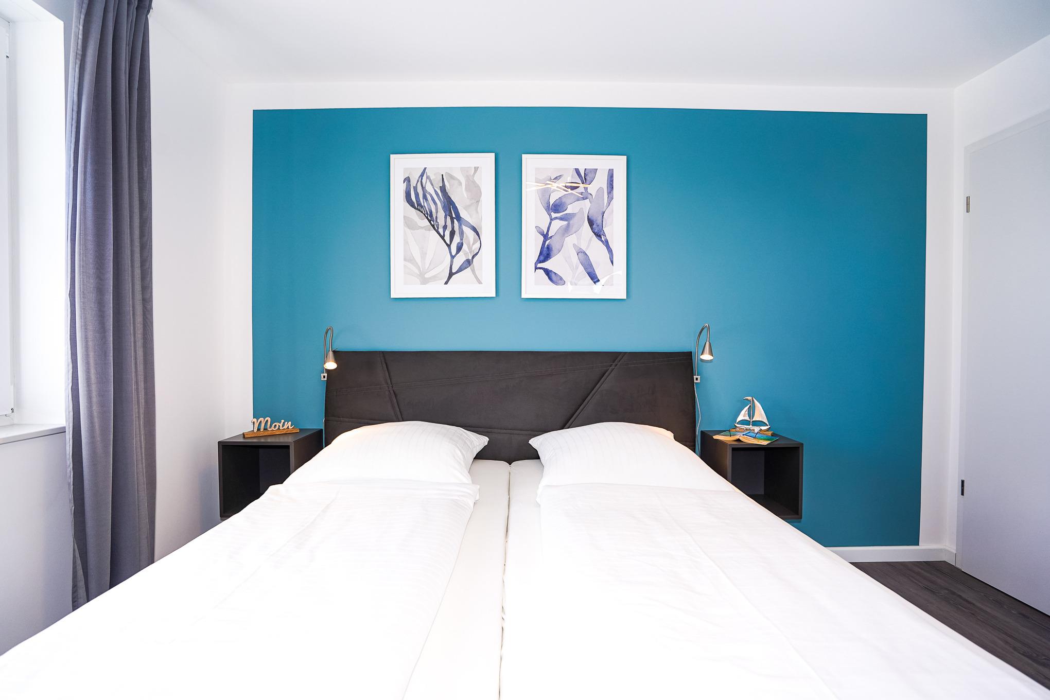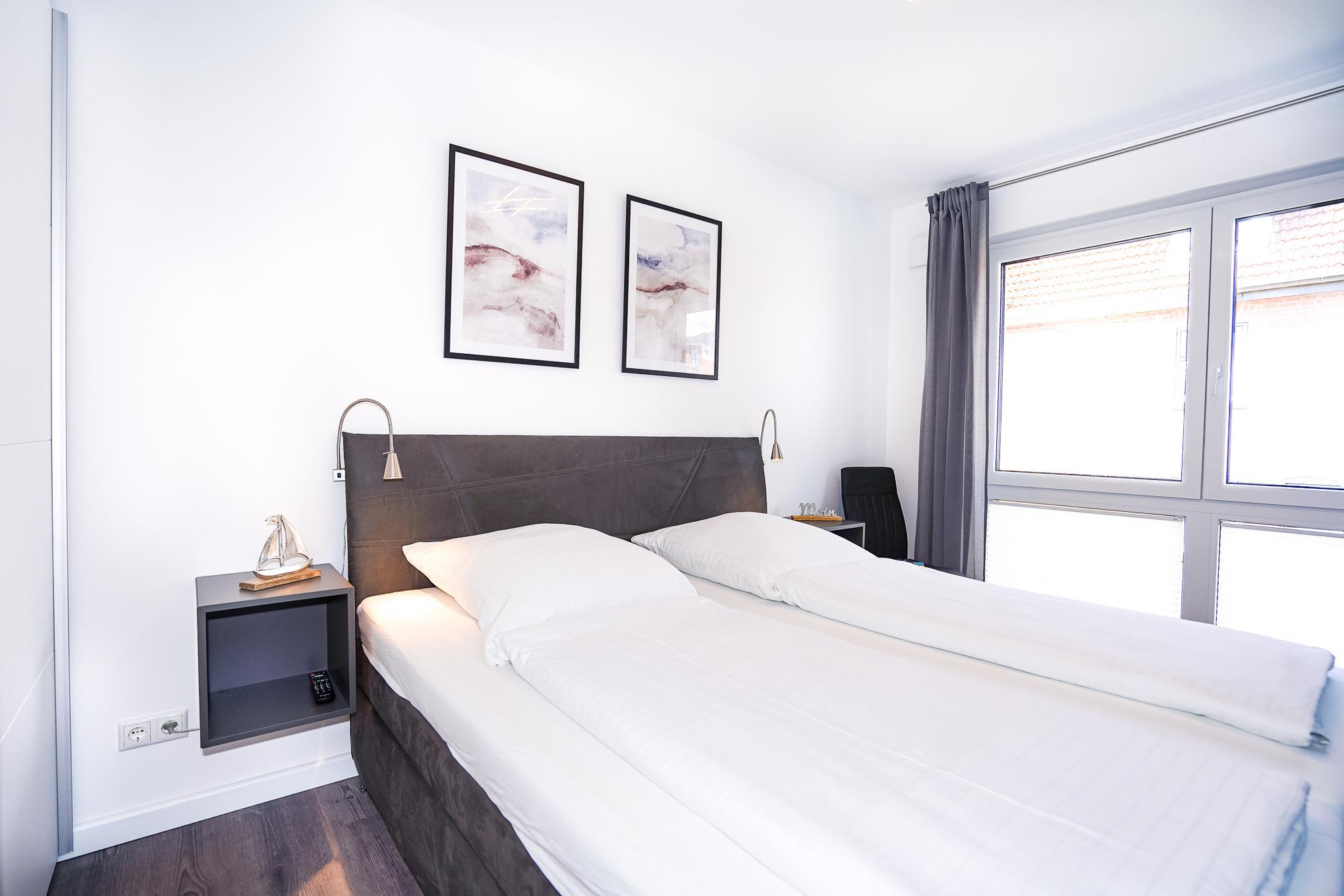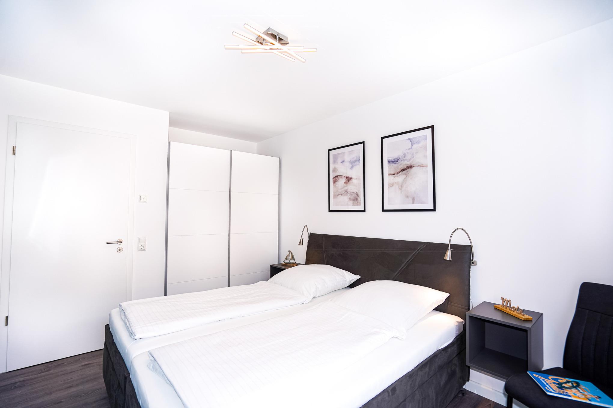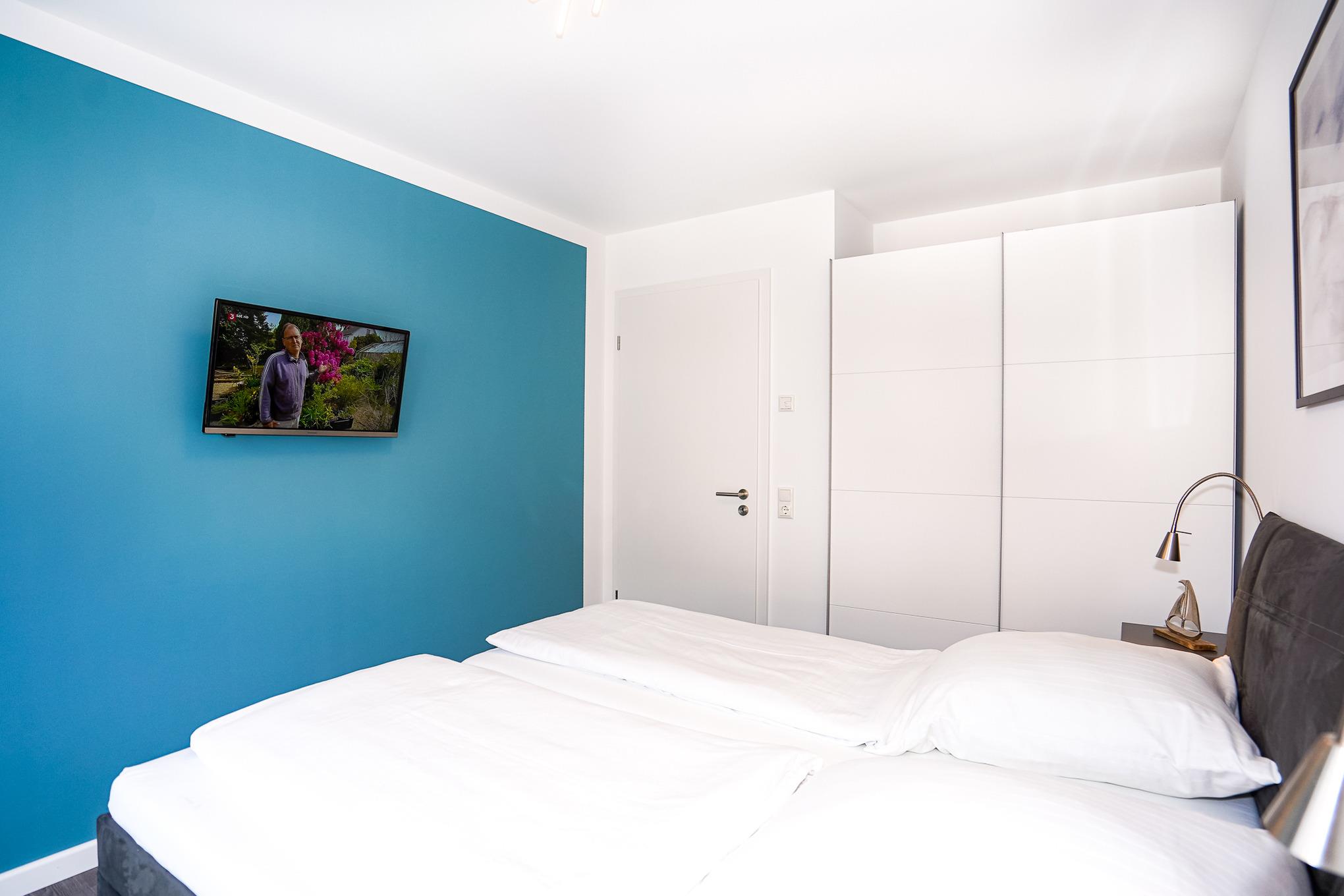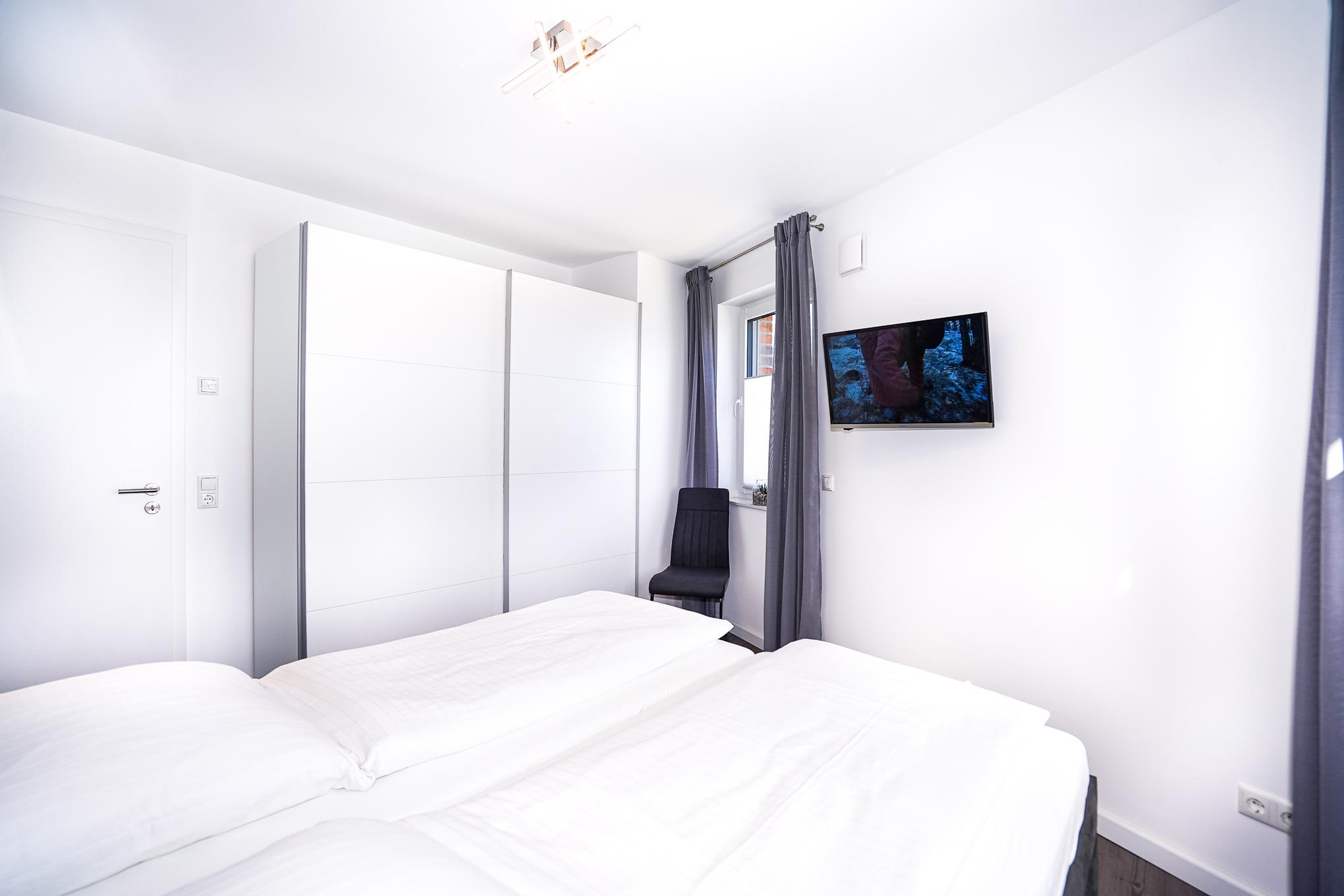 Zwei Schlafzimmer mit jeweils einem Doppelbett und hochwertigen Matratzen (90x200) sind die perfekte Voraussetzung zum Träumen von Grömitz. Wer vor dem Träumen noch lesen möchte, dem stehen Leselampen direkt am Bett zur Verfügung. Beide Schlafzimmer sind jeweils mit Kleiderschränken und Fernseher ausgestattet. In allen Zimmern finden Sie Plissees und elektrische Rollläden vor.