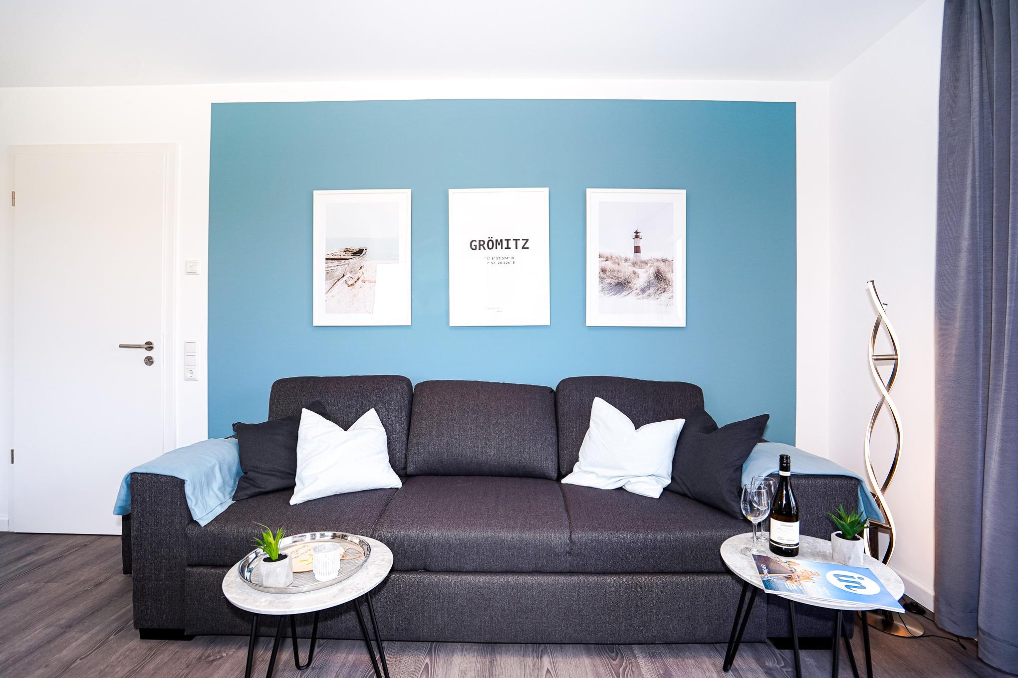 Moderne 3-Zimmer-Ferienwohnung im Herzen von Grömitz mit Balkon, WLAN und kostenfreiem Parkplatz.