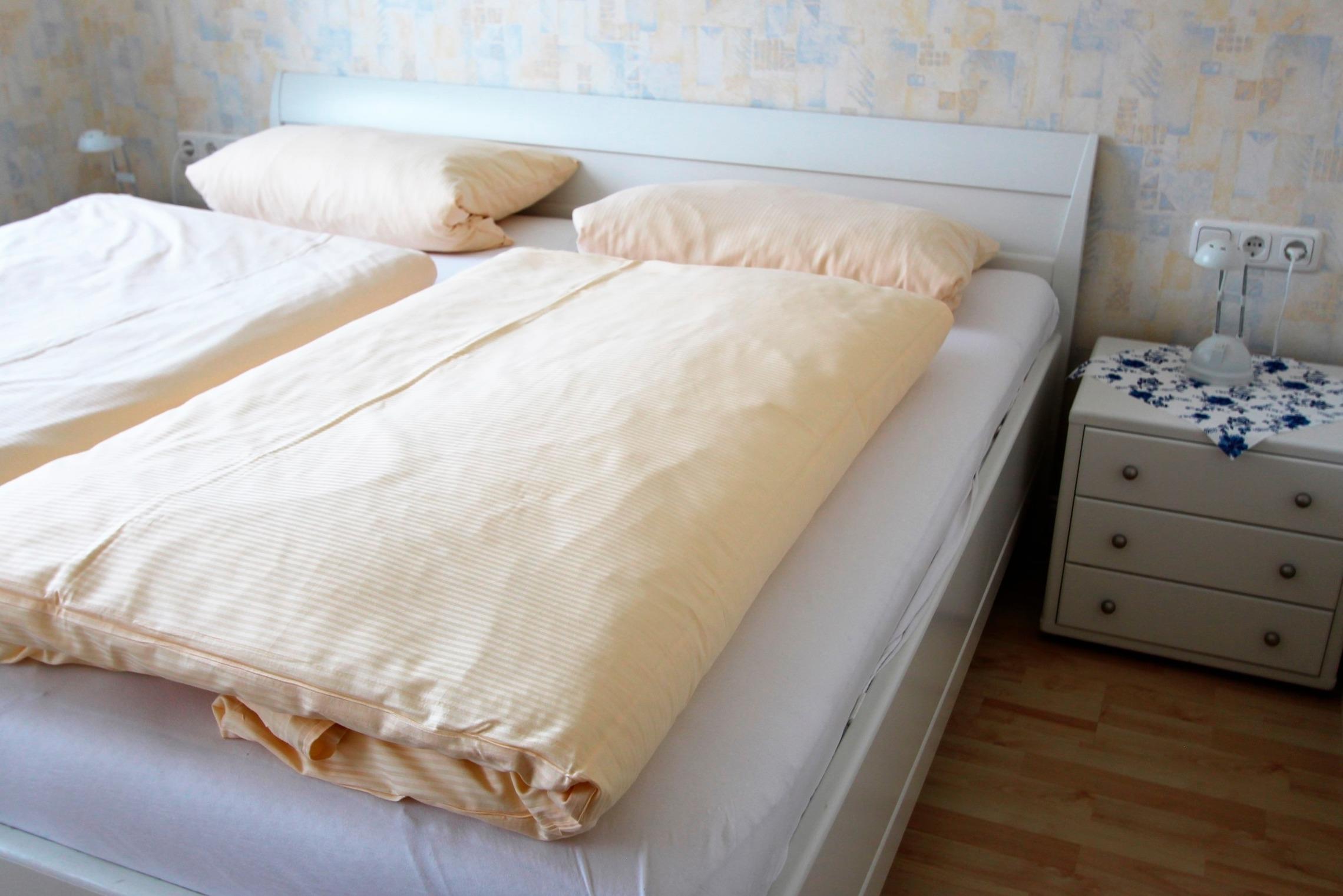 Moderne Ferienwohnung am Deich (100 m zum Hauptbadestrand), Schlafzimmer mit Doppelbett in Komforthöhe, Wohnzimmer mit Küchenzeile, Flachbildschirm-TV, Coach und Seel, Esstisch und Stühle. Küchenzeile mit Cerankochfeld, Geschirrspüler, Kühschrank mit Gefrierfach, Mikrowelle, Toaster, Kaffeemaschine u.v.m. Duschbad mit großem Spiegelschrank.