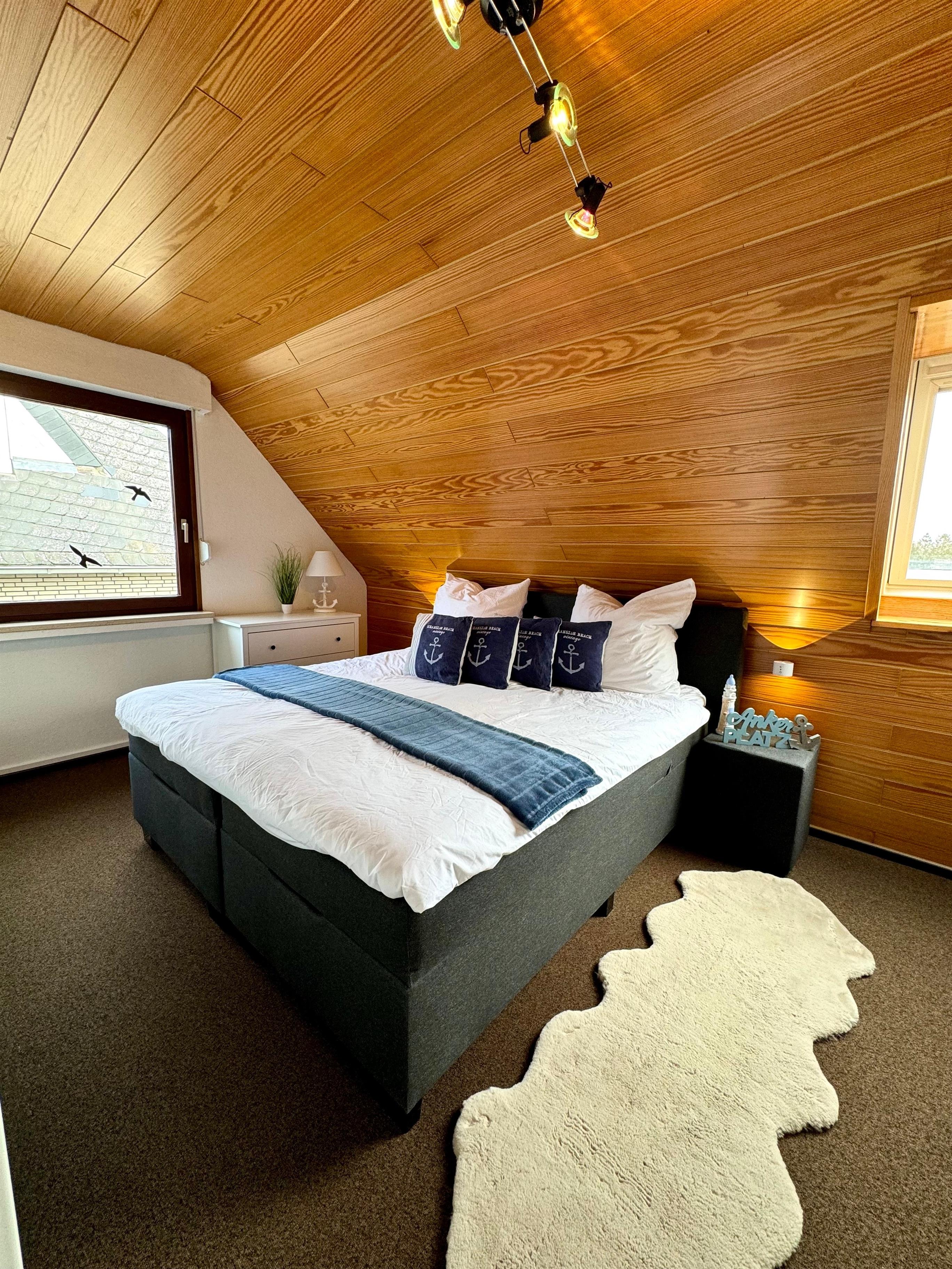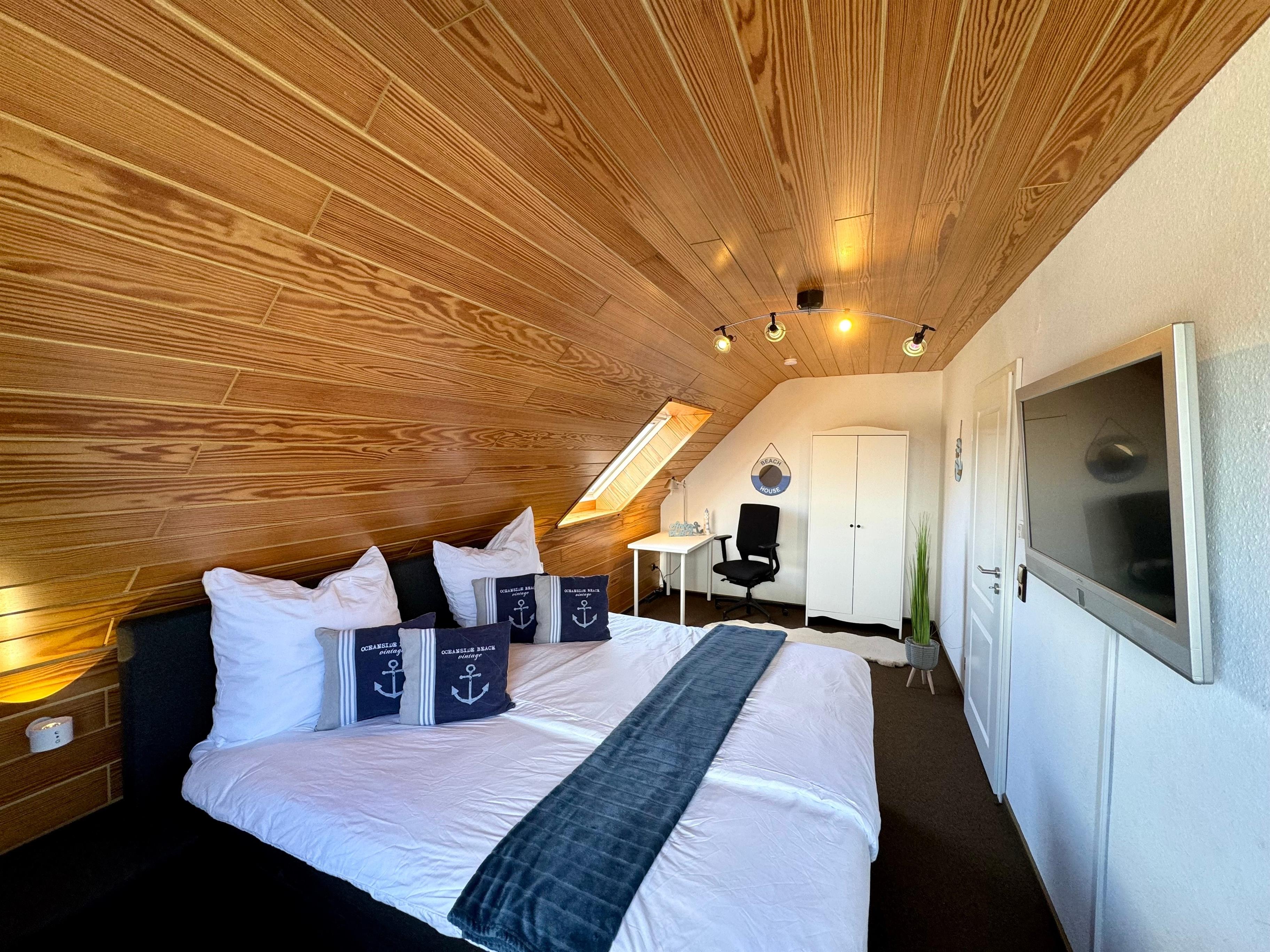 In der ersten Etage befindet sich ebenfalls ein Smart-TV, zwei weitere Doppelschlafzimmer sowie ein weiteres Tageslicht-Badezimmer mit Dusche/WC. Das Haus "Ankerplatz" befindet sich in einer ruhigen Sackgassenlage, nur wenige Gehminuten vom Strand und dem Zentrum entfernt. Zudem stehen Ihnen zwei Parkplätze am Haus zur Verfügung.