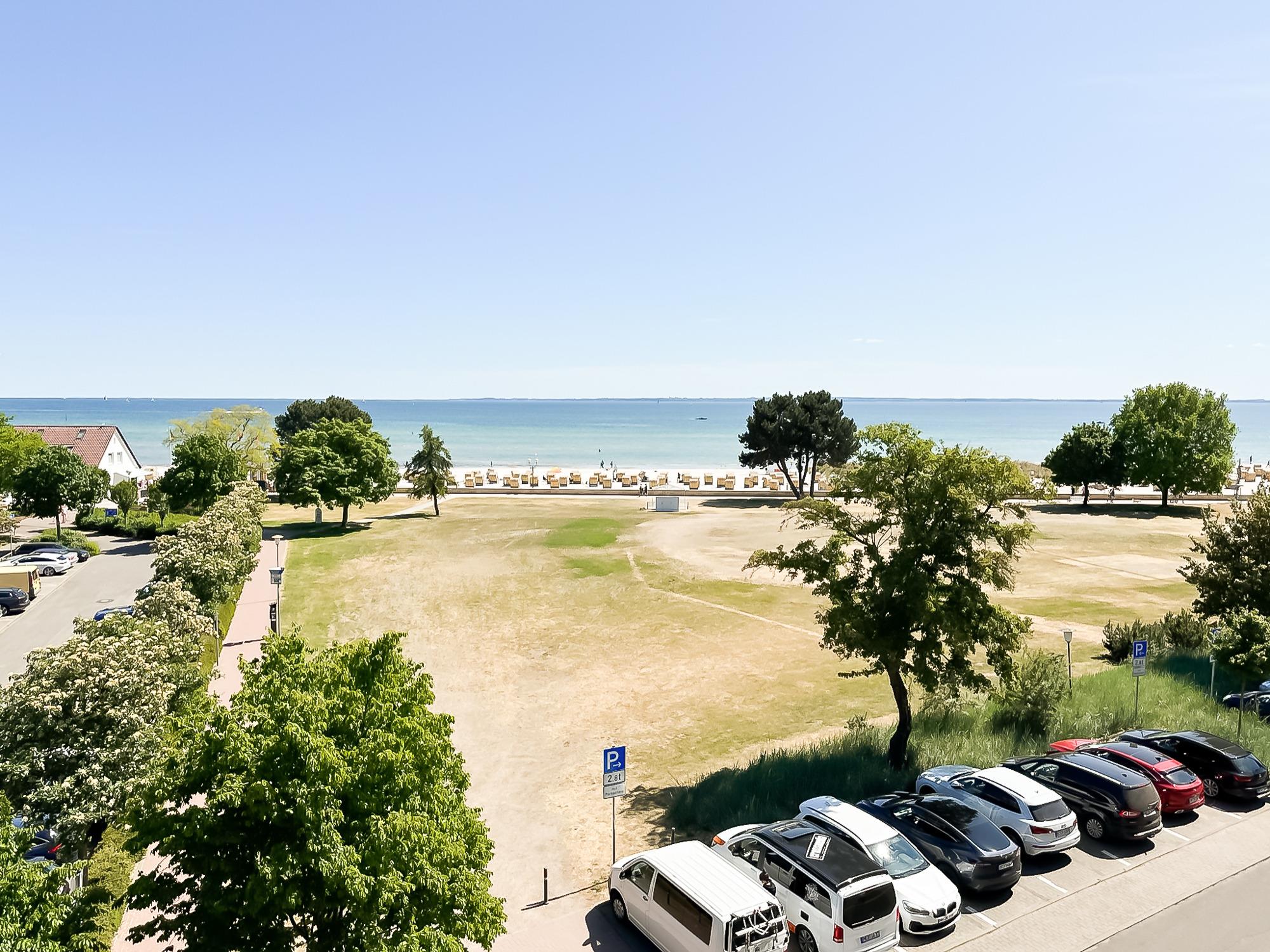 Helles Balkon-Appartement in Grömitz mit direktem Ostseeblick, nur 50m vom Strand entfernt, ideal für bis zu 3 Personen.