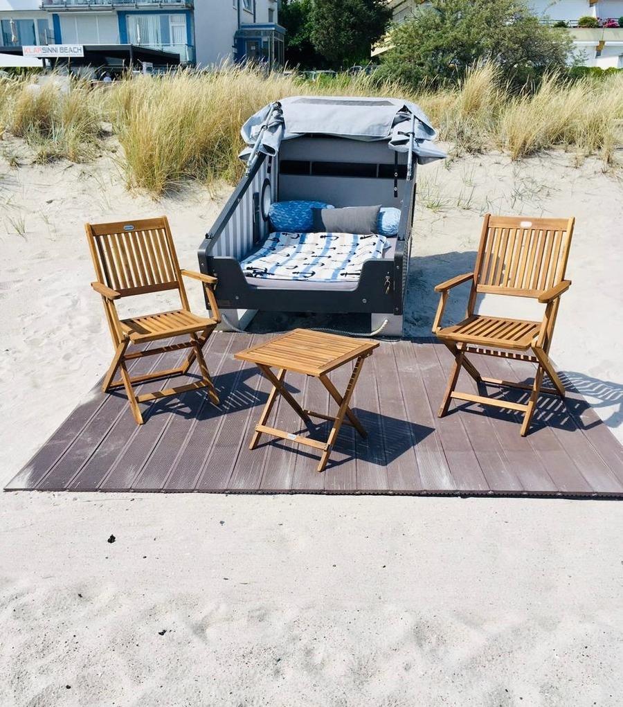 Romantischer Schlafstrandkorb für 2 Personen direkt an der Ostsee in Grömitz, ideal für eine unvergessliche Nacht unter Sternen.