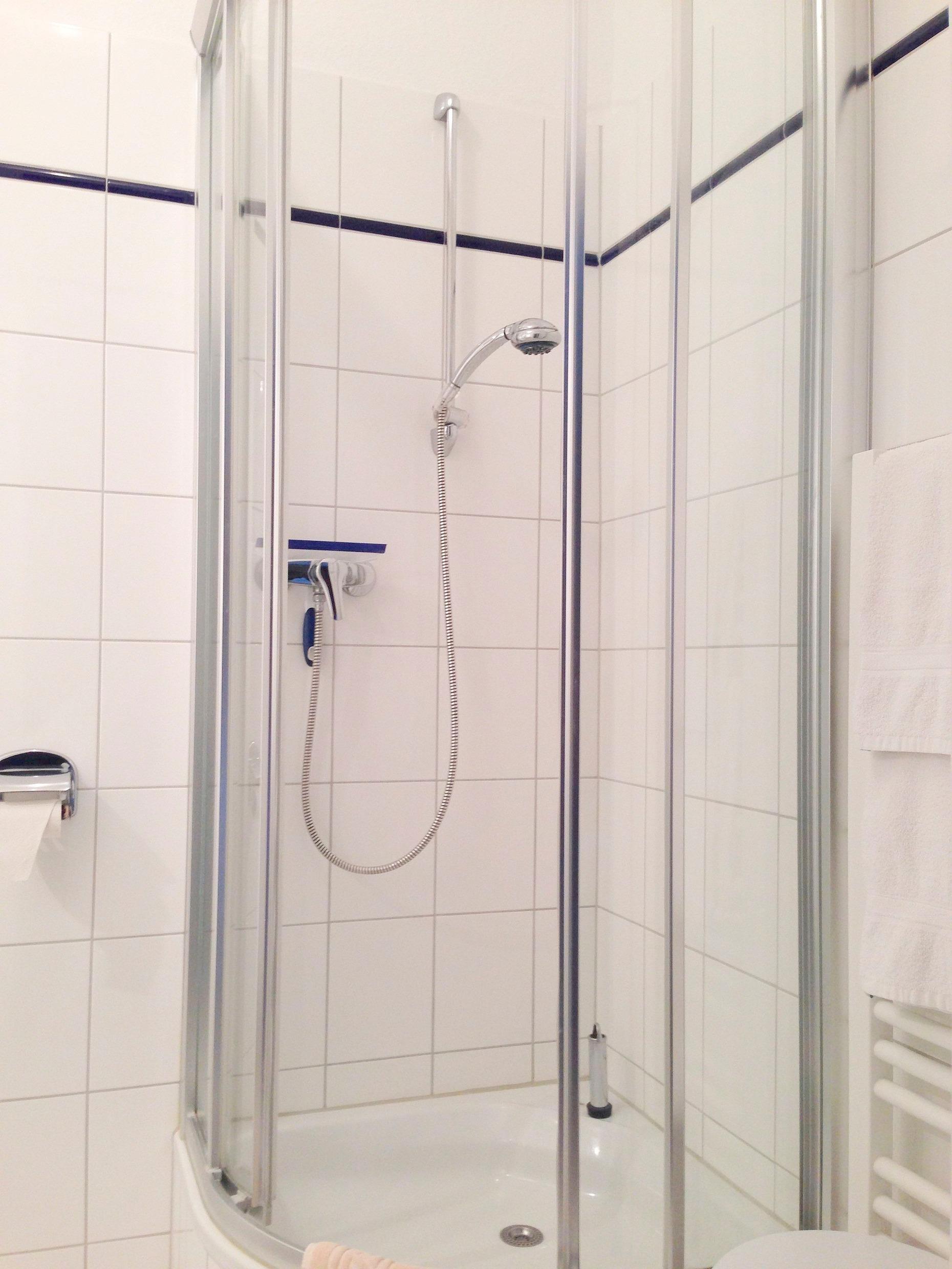 Vom Wohn-Schlafraum gelangen Sie in das helle Duschbad.