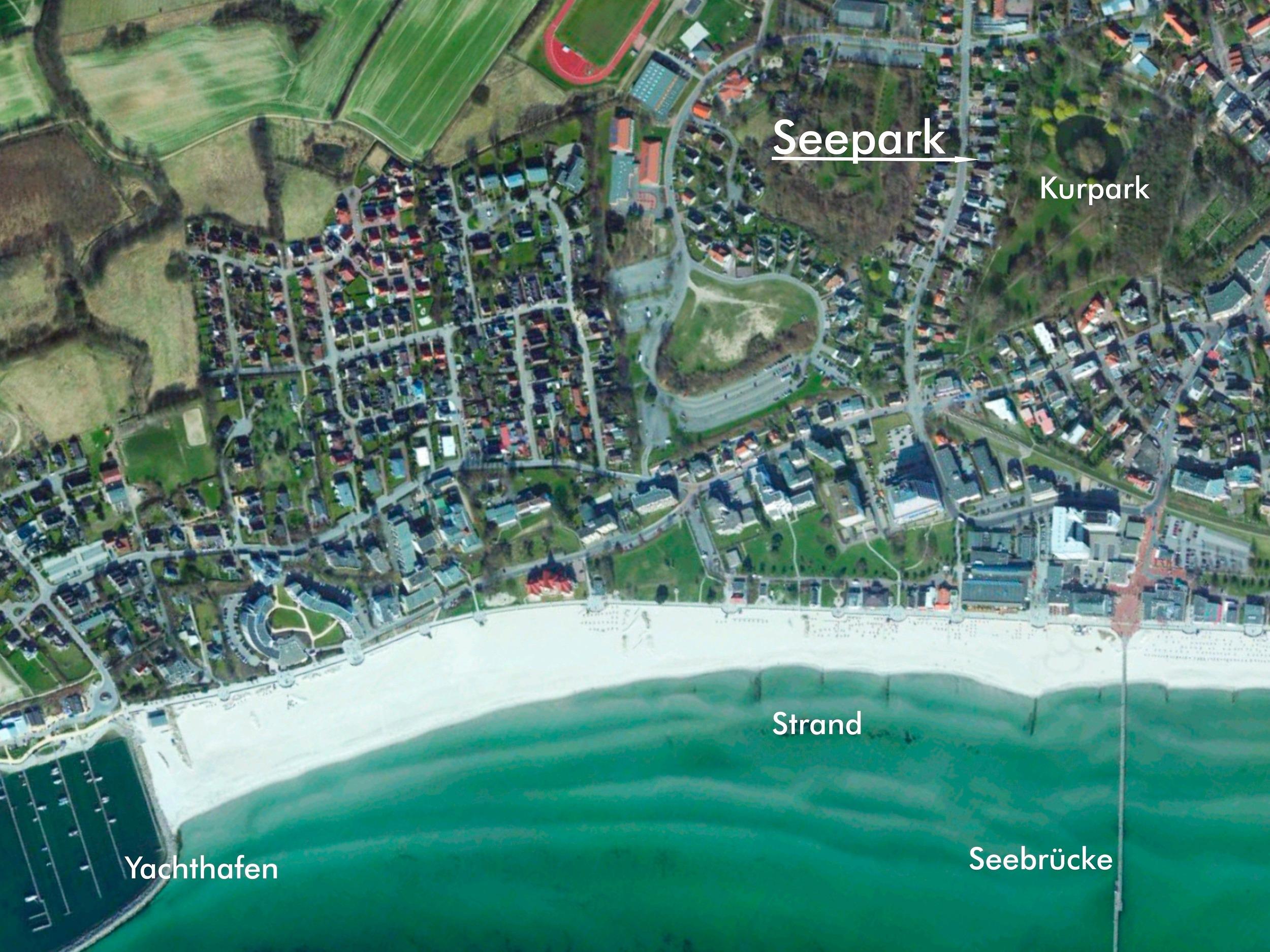 Der Seepark ist in leichter Hanglage zwischen der Christian-Westphal-Straße und dem Kurpark eingebettet. Die Wohnung "Sonnendeck" liegt im Hochparterre. Sie erreichen diese über eine 8-stufige Außentreppe, Laubengang und den wohnungseigenen Eingang auf der Garten- und Kurparkseite des Hauses.