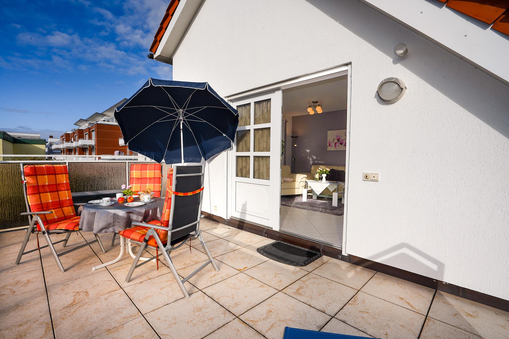 Gemütliche Ferienwohnung in Grömitz mit großer Dachterrasse, strandnah und zentral gelegen für erholsame Tage am Meer.