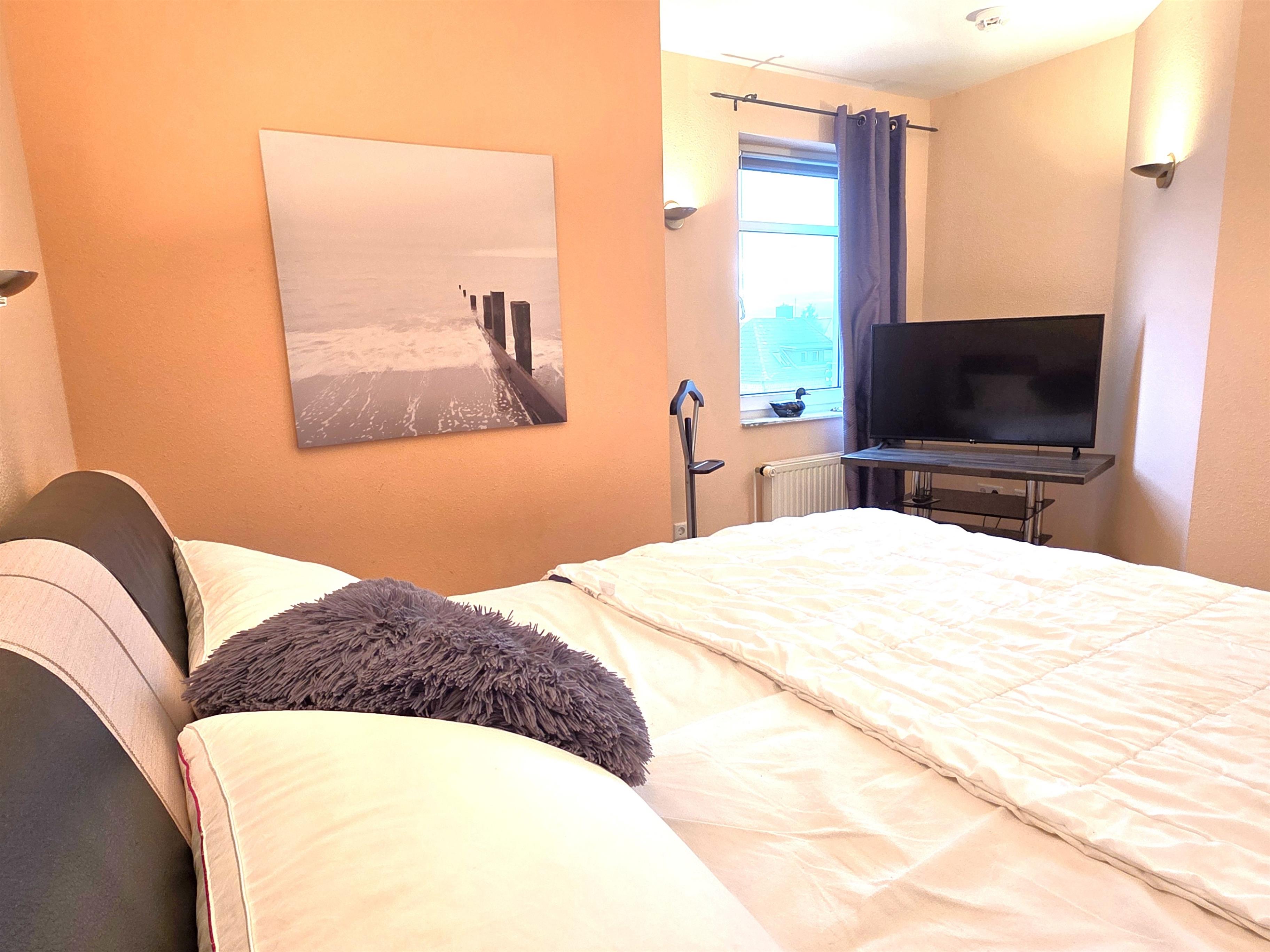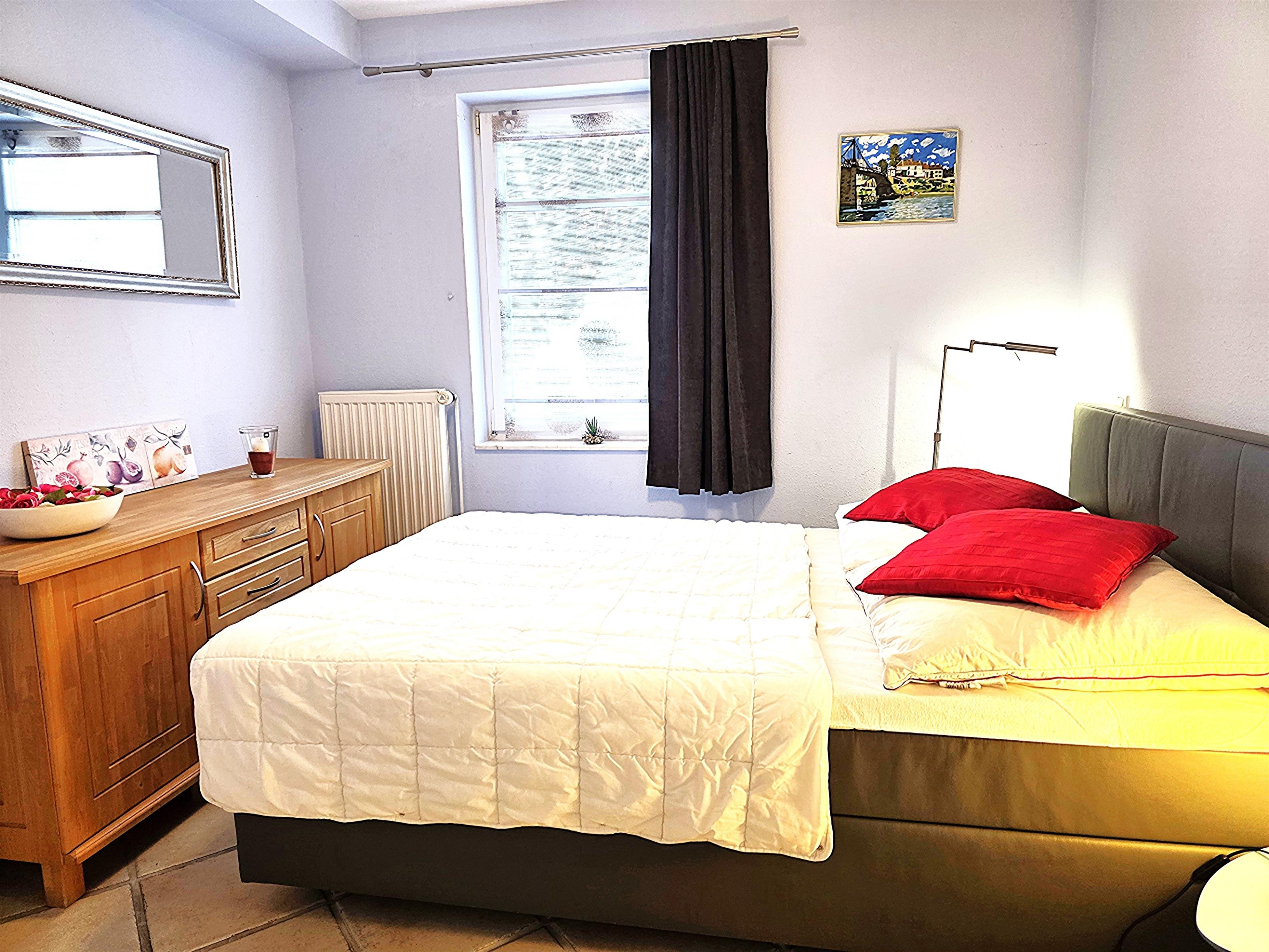 Das 2. Schlafzimmer hat ein Franz-Bett 140x200 & und eine Kommode im modernen Stil.